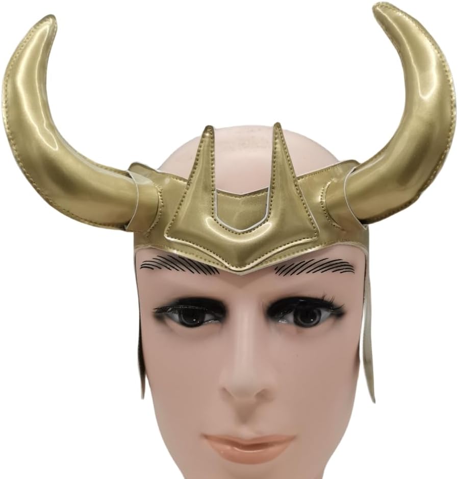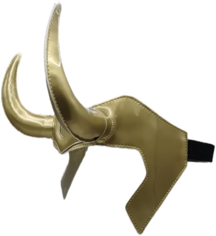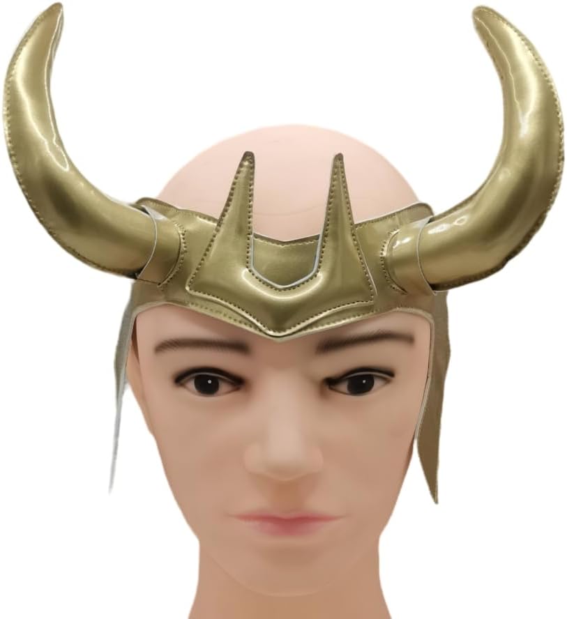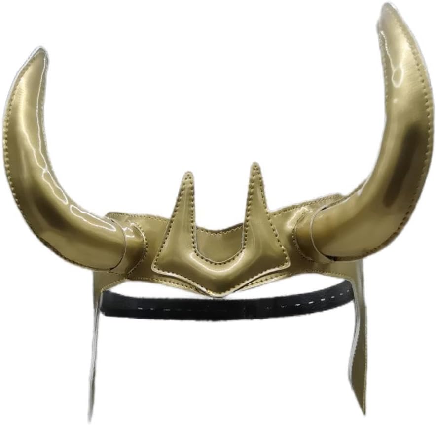 Okamsovr Loki Gold Helmet قناع التاج الجلدي، غطاء رأس Loki Horn للبالغين والأطفال التنكري مقاس قابل للتعديل، دعائم أزياء الهالوين الخارقة