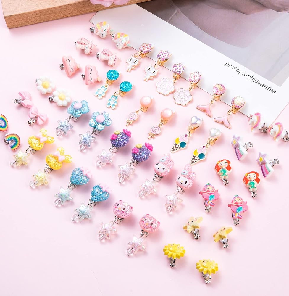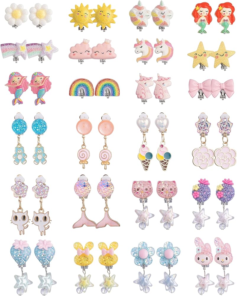 • أنماط مفعمة بالحيوية ولطيفة - 24 زوجًا من الأقراط غير المثقوبة جميعها بأشكال أو ألوان مختلفة، مثل أقراط يونيكورن، وأقراط الزهور، وأقراط حورية البحر، وأقراط الأرنب، وأقراط القطط، وأقراط قوس قزح إلخ. هذه الأقراط يمكن أن تجعل فتاتك تبدو أكثر جاذبية وجاذبية.