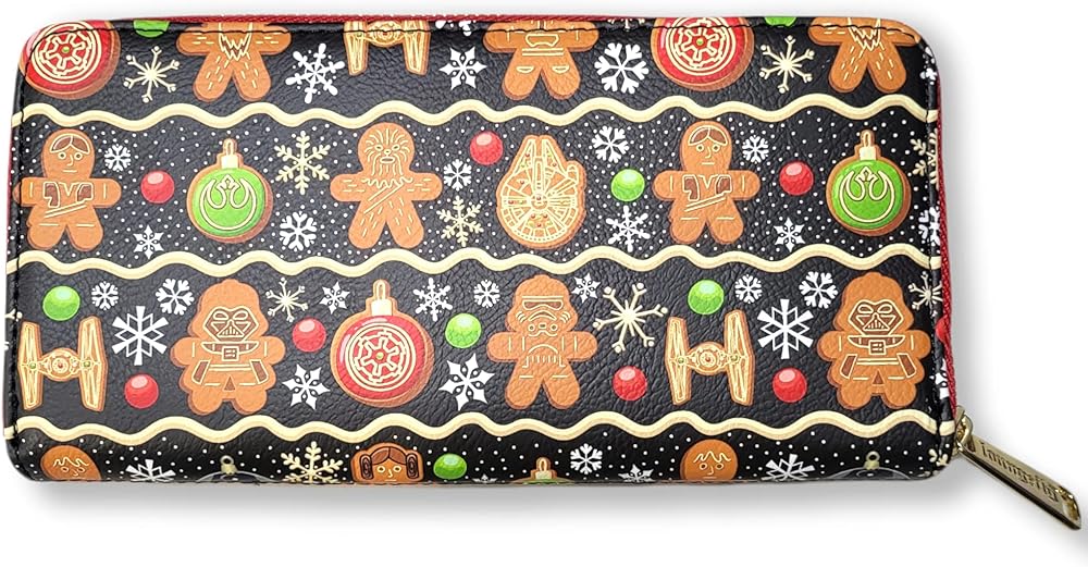 محفظة جروتو تريجرز الحصرية الحجم: العرض: 8 بوصة × الارتفاع: 4 بوصة محفظة بسحاب من الجلد الصناعي. تفاصيل مطبوعة. تتميز محفظة الحقيبة هذه بطباعة كاملة مما يعني أن وضع كل حقيبة سيختلف. مجموعة ستار وورز كريسماس هوليداي