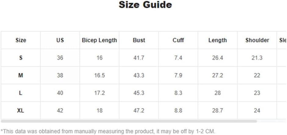 X-Large: طول العضلة ذات الرأسين: 18.0 بوصة، الصدر: 47.2 بوصة، الأساور: 8.8 بوصة، الطول: 28.7 بوصة، الكتف: 24.0 بوصة، طول الكم: 23.2 بوصة