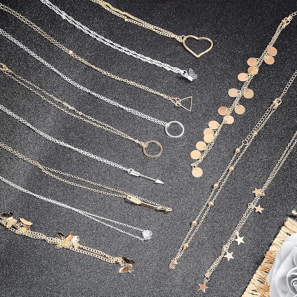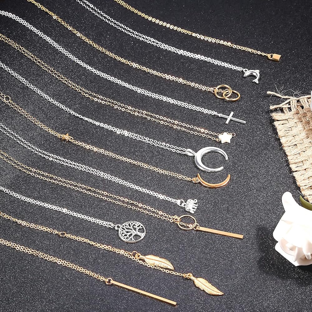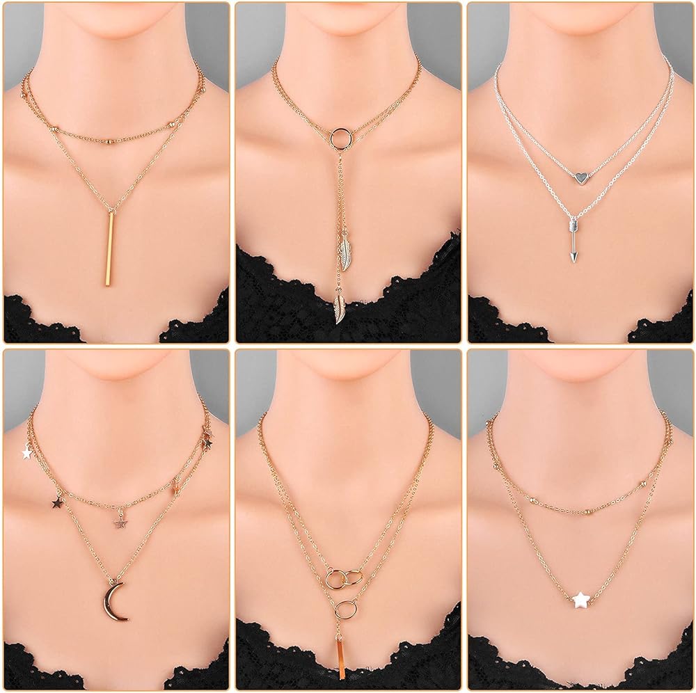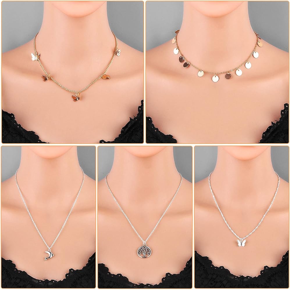 24 pieces of necklaces set for women girls in different styles and colors, perfect to match with sweaters, jeans, skirts, vests and daily dress
