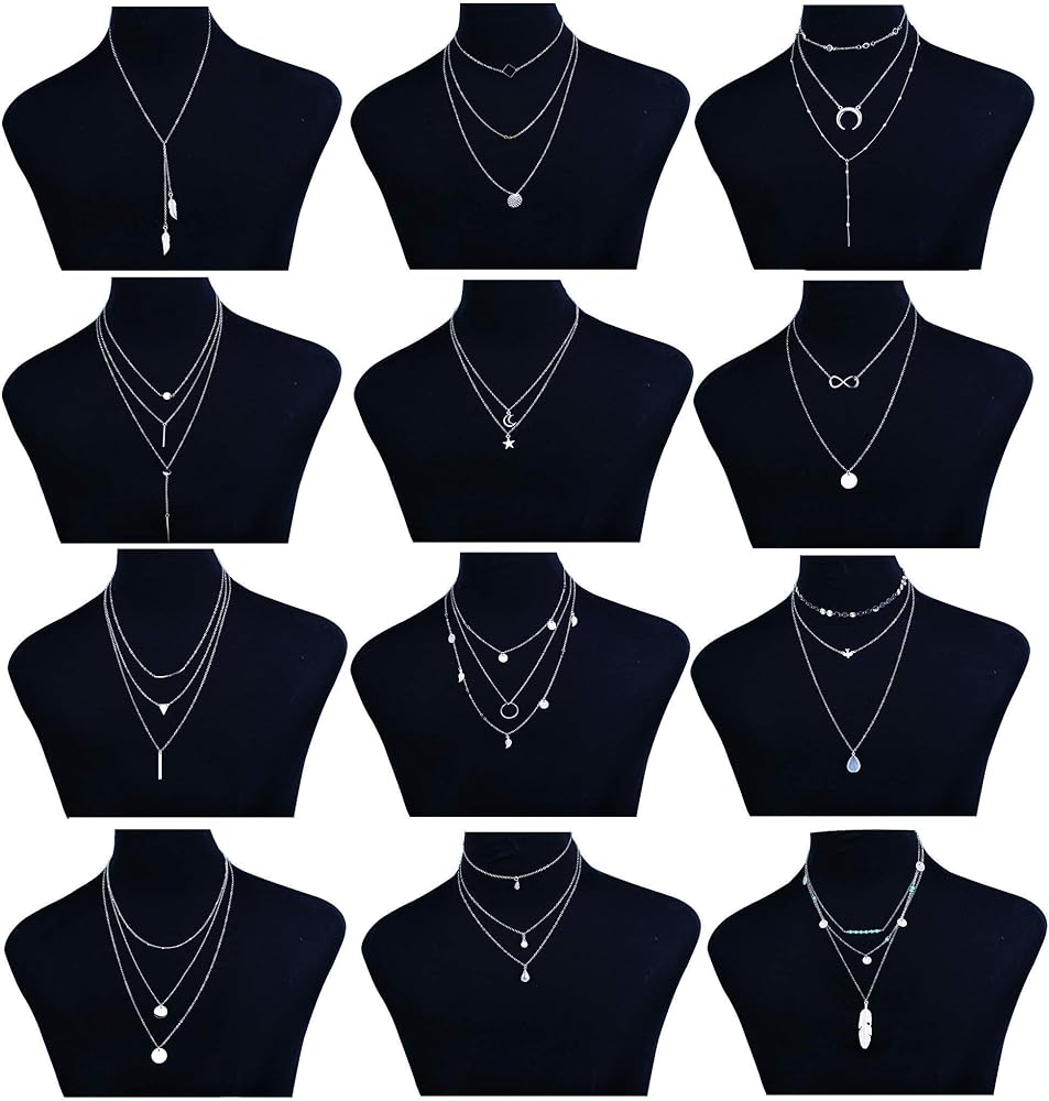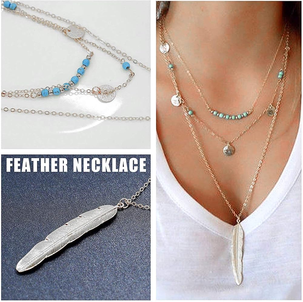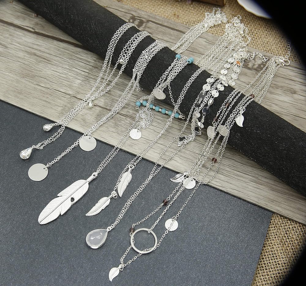 FINREZIO 12 قطعة قلادة مطلية بالذهب الطبقات للنساء الفتيات مثير سلسلة قلادة طويلة Y قلادة بار ريشة قلادة معلقة مجموعات