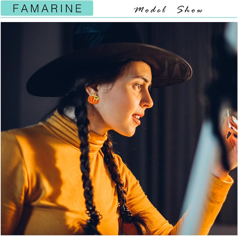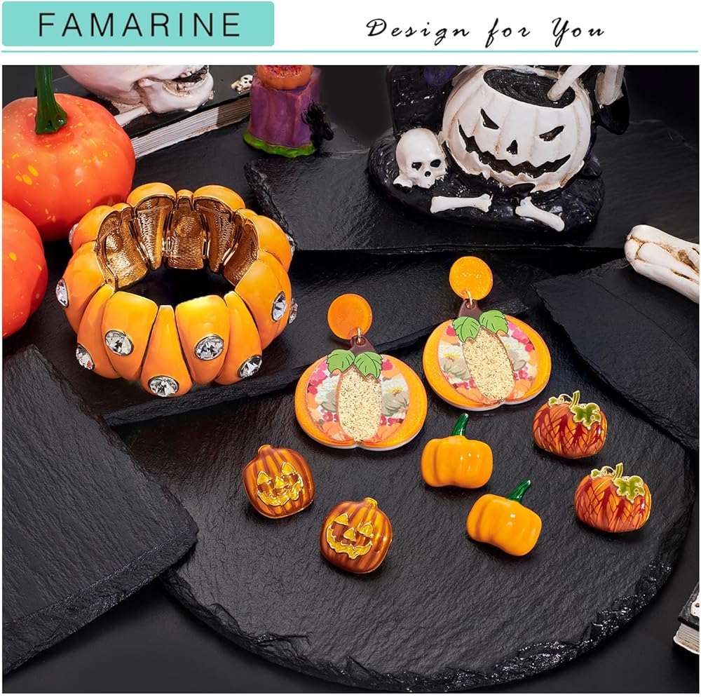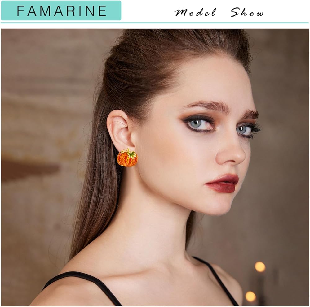 🎃 Halloween Stud Earrings: They are very unique design, many choices for pumpkin earrings. Pair it with FAMARINE's unique big pumpkin bangle bracelet.