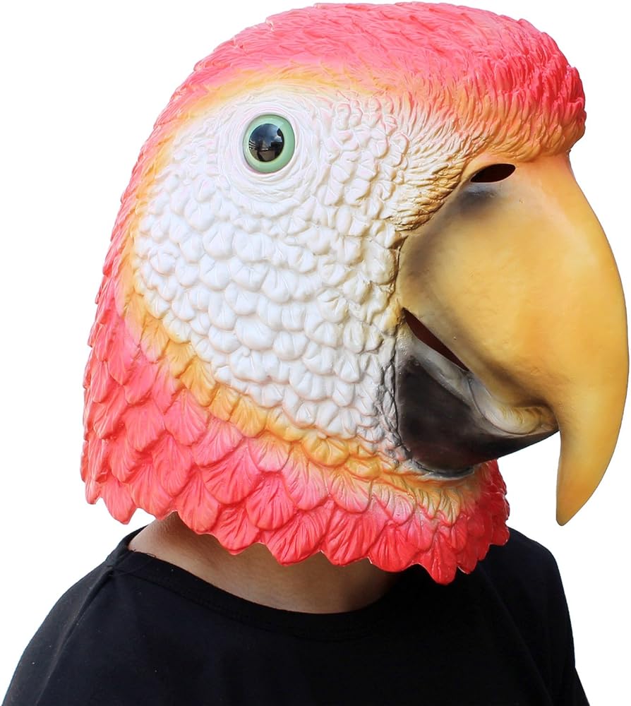 قناع رأس للطيور من اللاتكس على شكل ببغاء أحمر من بارتي هوب