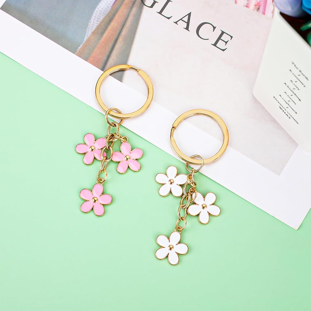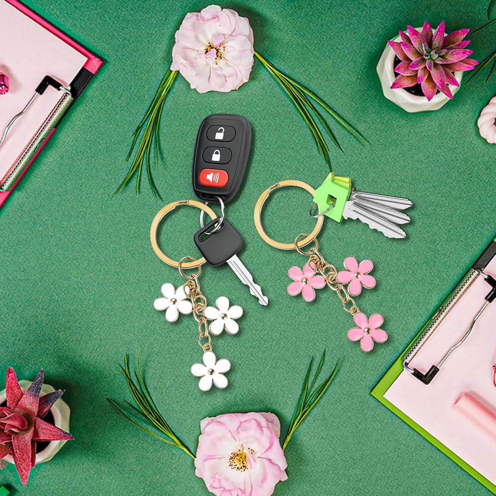 Bewudy 2 قطعة سلاسل المفاتيح الزهور للنساء، سلسلة مفاتيح قلادة حلقة رئيسية الديكور للفتيات أفضل هدية