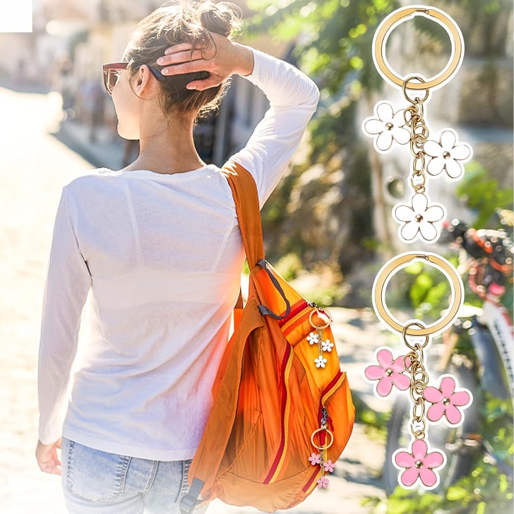 • 【نمط زهرة لطيفة】: إكسسوارات سلسلة المفاتيح الزهرية متطابقة مع الزهور الجميلة لتشكيل نمط قلادة بسيط وأنيق، وهو مناسب جدًا للنساء لاستخدامه كمفتاح أو زينة للحقيبة.