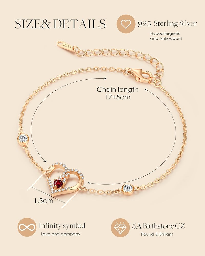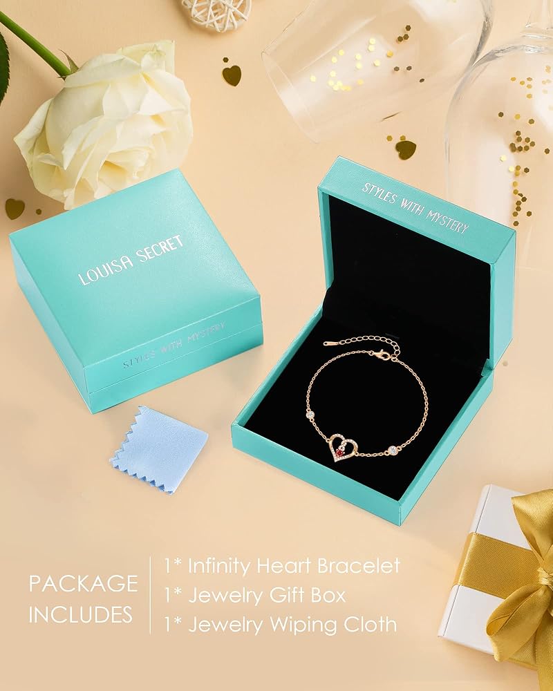 LOUISA SECRET إنفينيتي الحب سوار القلب للنساء، 925 الفضة الاسترليني سحر المرأة جوهرة الميلاد سوار، روز الذهب مطلي عيد ميلاد الذكرى والمجوهرات هدية للنساء الأم أمي فتاة زوجة صديقة