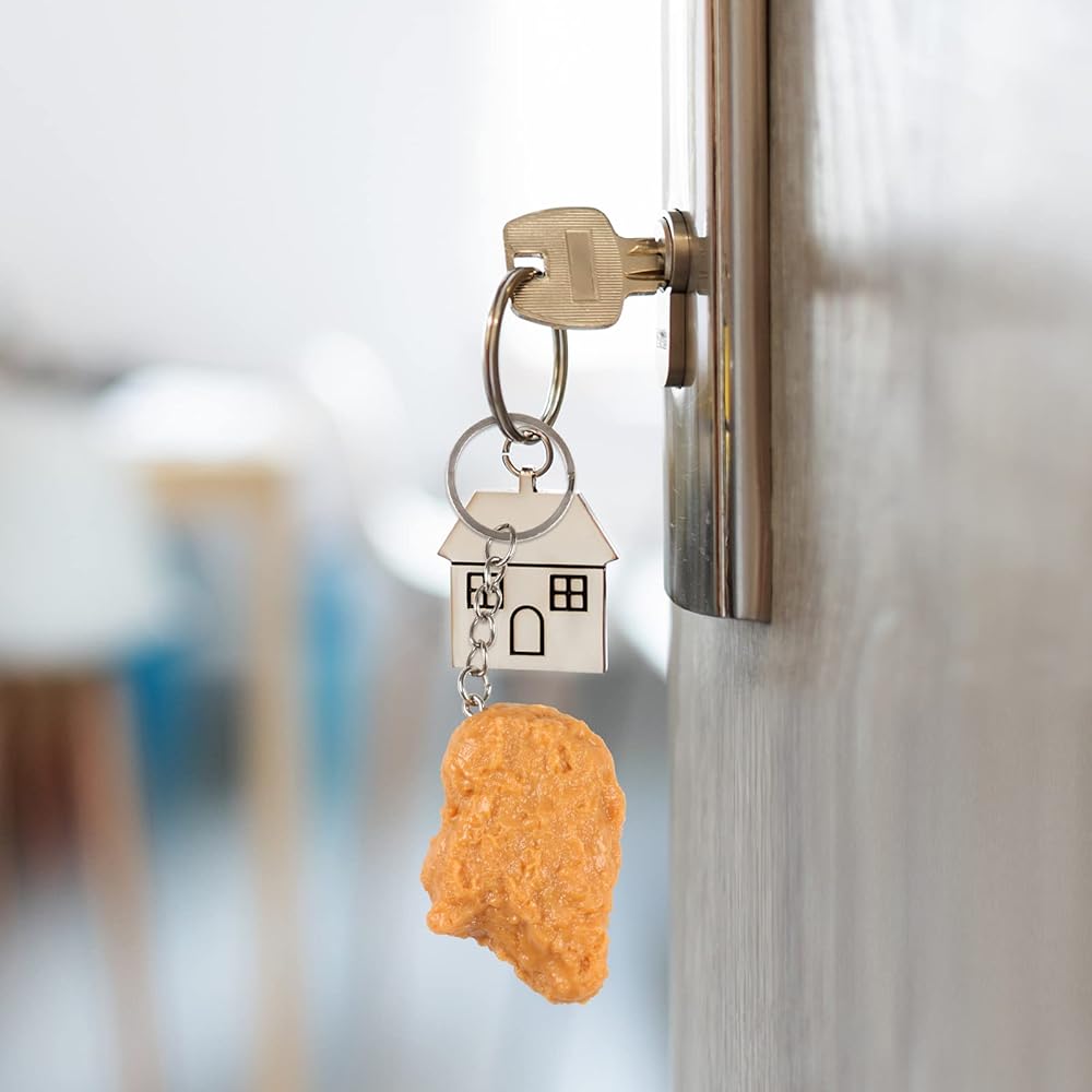 سلسلة المفاتيح مصممة على شكل دجاج مقلي وهي فريدة وملفتة للنظر وتحظى بشعبية كبيرة بين الأطفال.