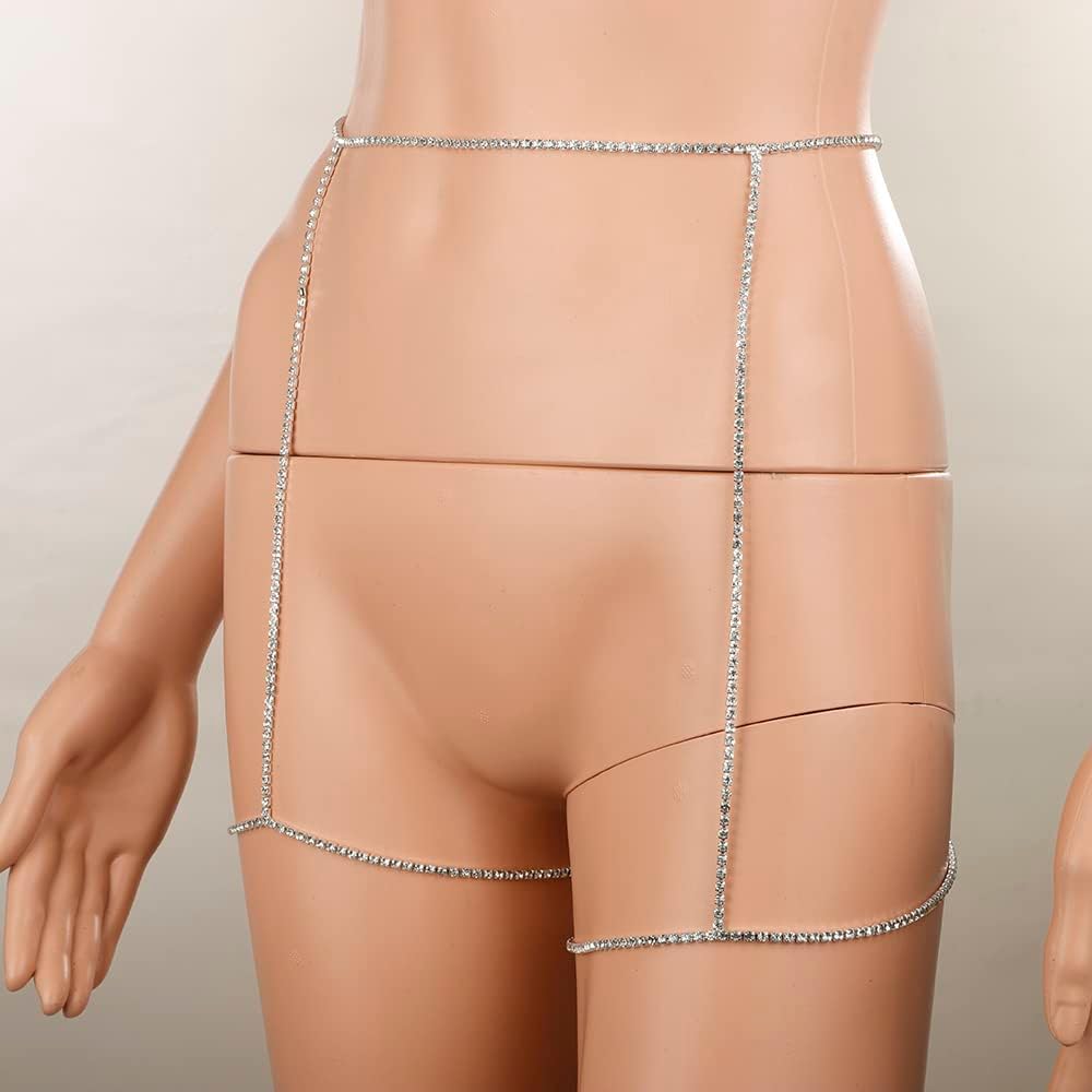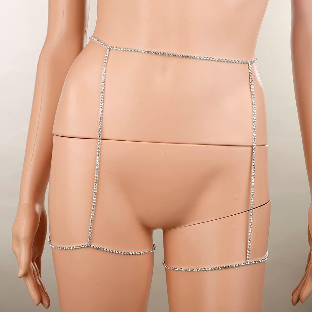 سلاسل الخصر الكريستالية الفضية من رومتوك مع ملحقات الجسم لسلسلة الساق للنساء والفتيات مجوهرات الأزياء