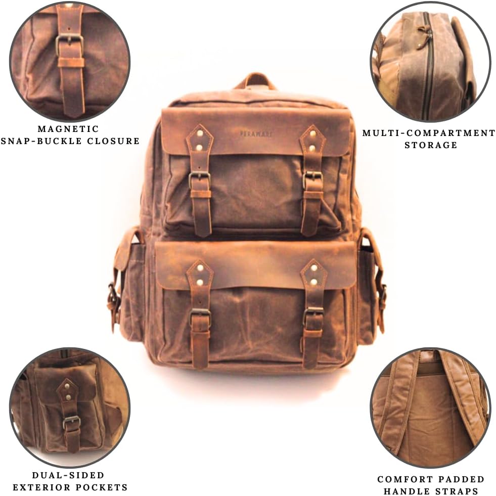 جودة فاخرة: حقيبة الظهر للسفر الغربية المصنوعة من القماش الجلدي العتيق من Peraware مصنوعة من مواد عالية الجودة، بما في ذلك هيكل القماش المصنوع من الجلد والشمع من أجل القوة والمتانة.