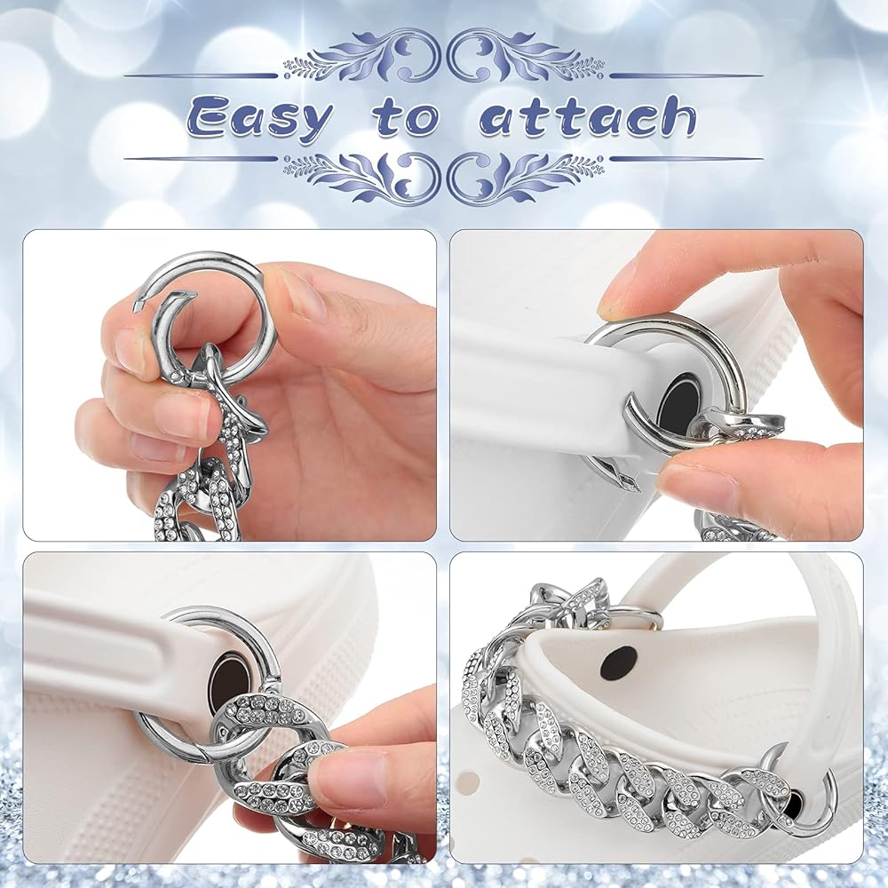 تصميم جميل: تم تجهيز ملحقات سلسلة الأحذية هذه بإبزيم زنبركي من خليط معدني على كلا الجانبين، مما يجعلك تعمل بها بسهولة، ويمكن ربط سلسلة الأحذية الساحرة بسهولة بالحذاء، لذلك لا تحتاج إلى استخدام الغراء، فقط أصلح الحذاء سلاسل مباشرة على رباط الحذاء، مما يجعل حذائك أكثر أناقة وحيوية