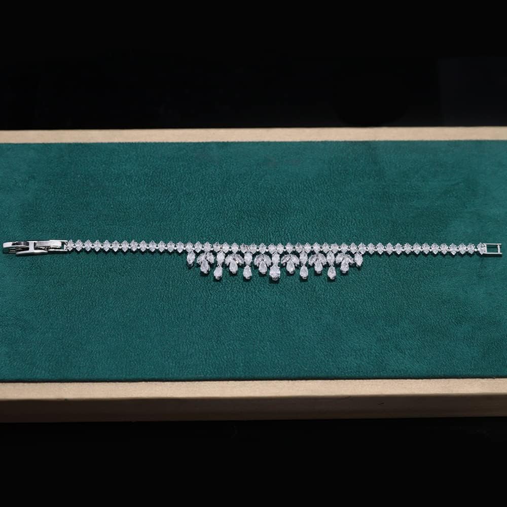 ✫العبوة: سوف تحصل على عبوة هدية واحدة تتضمن قطعة واحدة من السوار، وزوج من الأقراط المتدلية، وقطعة واحدة من القلادة المتدلية، وحلقة واحدة قابلة للتعديل. تتميز مجموعة مجوهرات الزفاف بتألق شديد وأنيق وفخم والتي ستبرزين بالتأكيد عند ارتدائها ومجموعة المجوهرات المتلألئة هذه هي الخيار الأفضل للحظات المهمة.