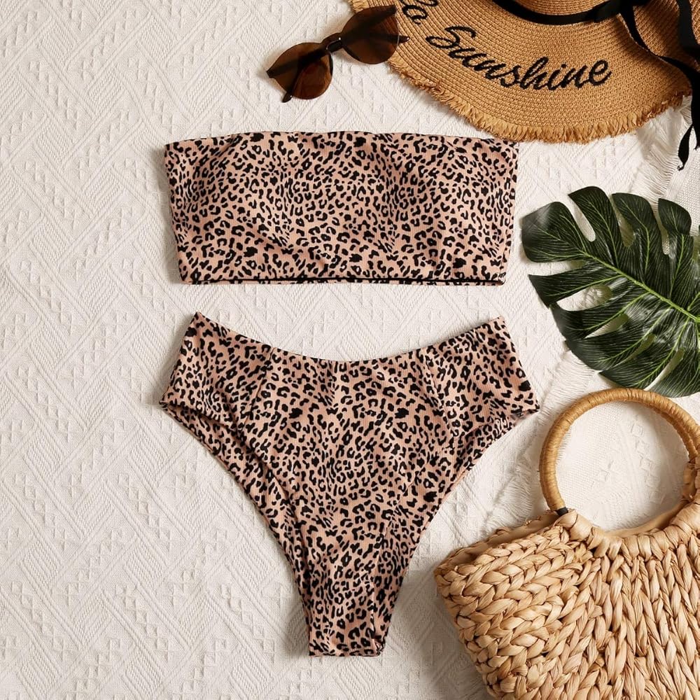 السمات: طباعة جلد الفهد، بدون أكمام، خصر مرتفع، قطعتان