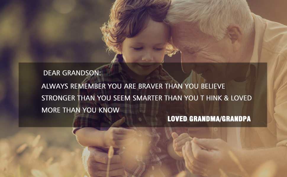 1: "يتذكر الحفيد أنك شجاعة دائمًا مما تعتقد أنه أقوى مما تبدو أكثر ذكاءً مما كنت تحلق وتحب أكثر مما تعرف"، الجد هو قوة الحفيد، يمكن للجد أن يعطيك قوة الروح لهزيمة كل شيء سيء عندما تواجه إحباط أو سوء الحظ، لأن الجد يعتقد أنك سوف تصبح أقوى وأكثر شجاعة وأكثر ذكاءً.
