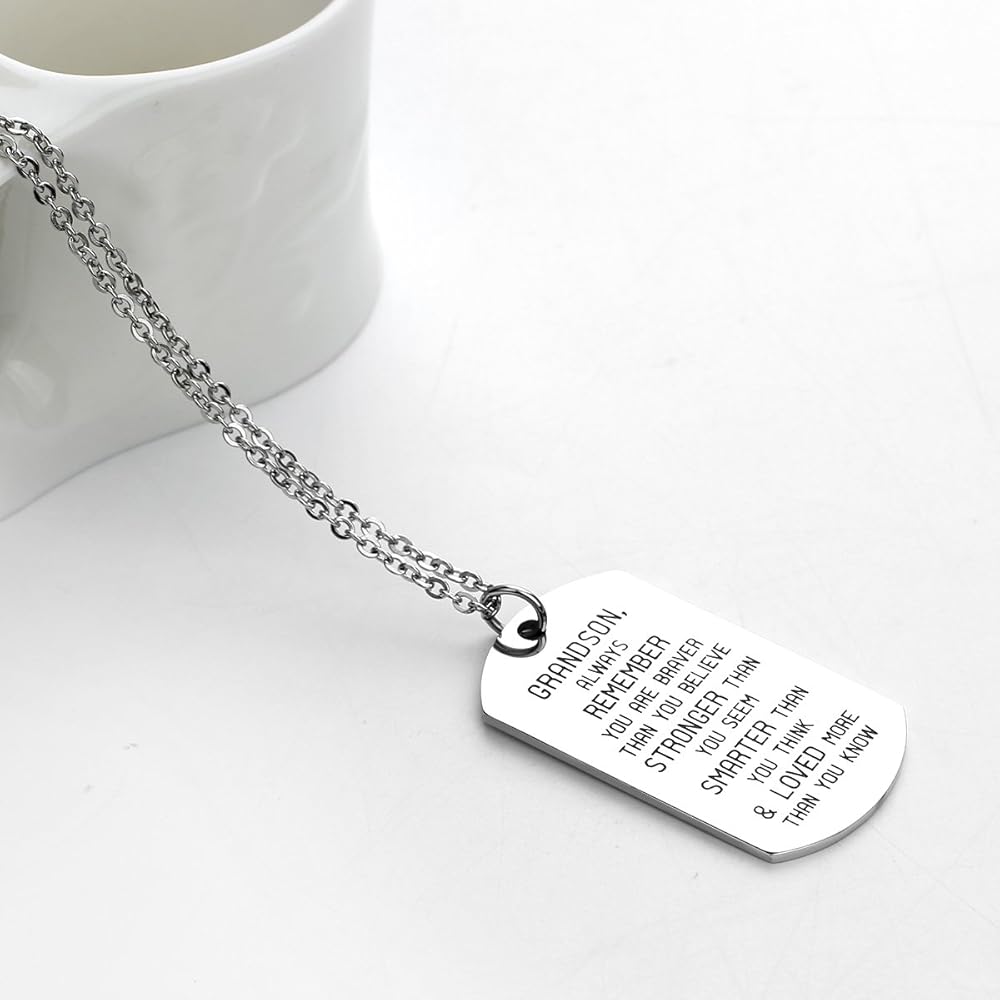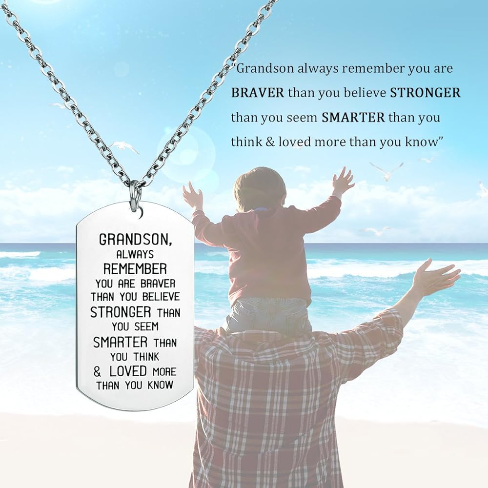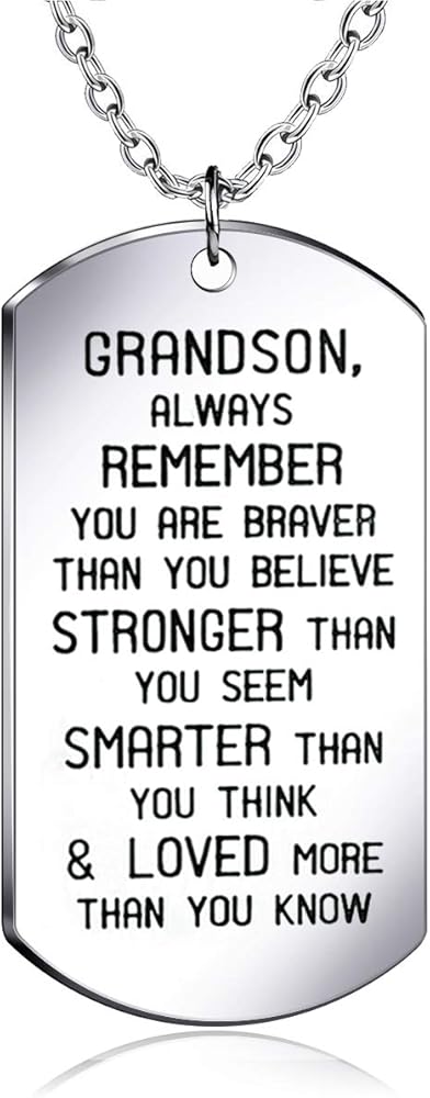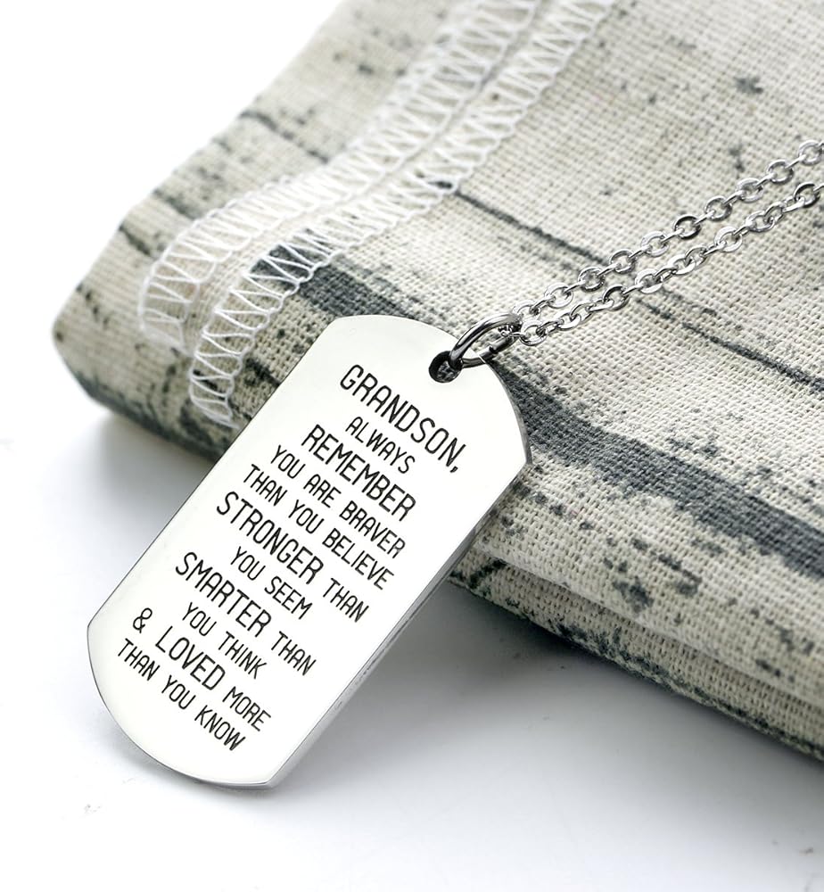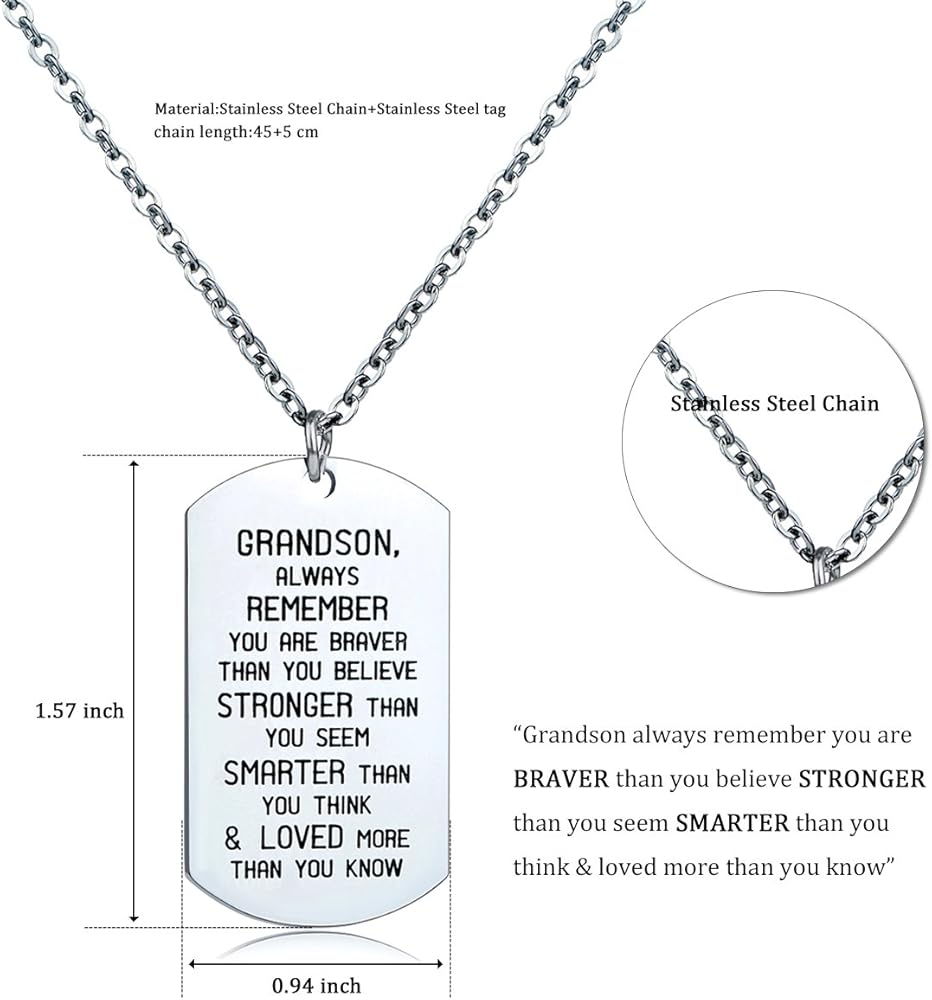 بطاقة الرسالة - يتذكر الحفيد دائمًا أنك شجاعة مما تعتقد أنه أقوى مما تبدو أكثر ذكاءً مما كنت تعشق وتحب أكثر مما تعرف معلومات المنتج: - المادة: الفولاذ المقاوم للصدأ (لا يسهل تلفه وتبهتان) - الحجم: بطاقات مقاس 1.57 × 0.94، طول السلسلة: 45 سم (17.7 بوصة) + 5 سم (1.96 بوصة) تمديد - الحزمة: 1 قلادة + أسود حقيبة الهدايا التي تريد أن تقول البائع قلادة متدلية رائعة للعائلة - يتذكر الحفيد دائمًا أنك شجاعة مما تعتقد، أقوى وأكثر ذكاءً مما تعتقد وأحببت أكثر من تعلم!