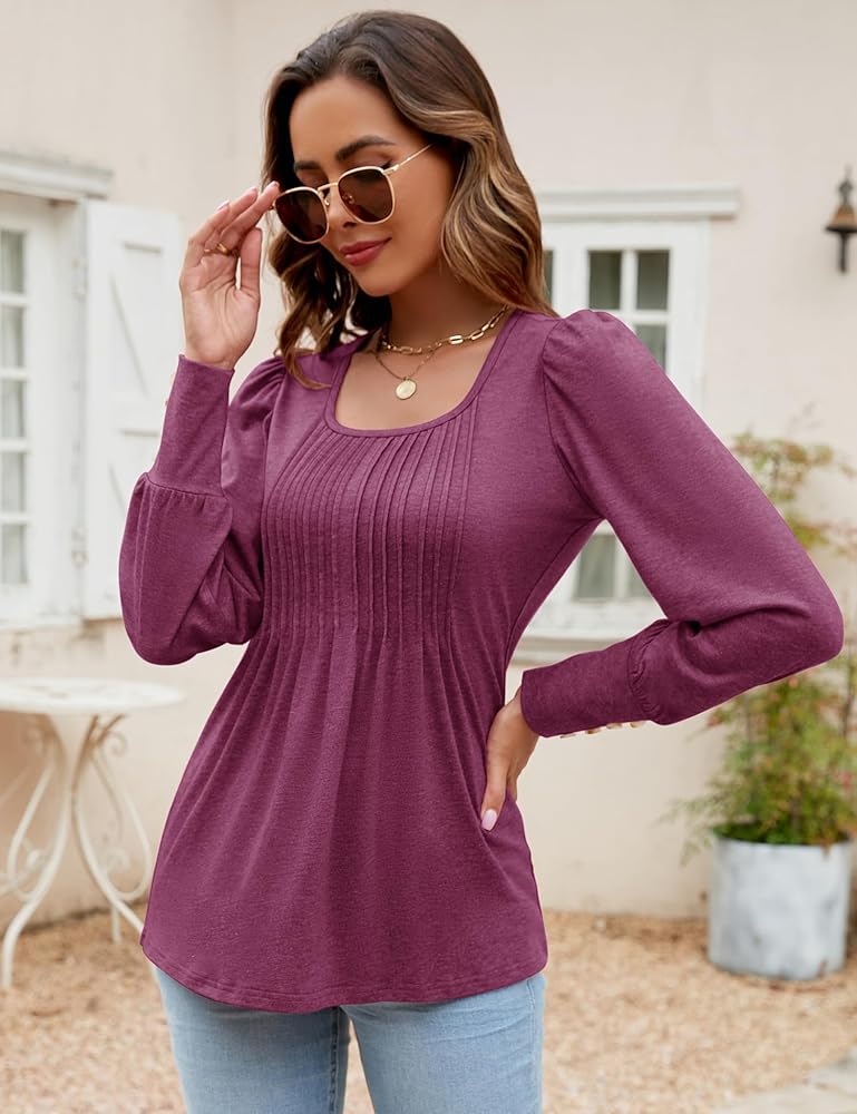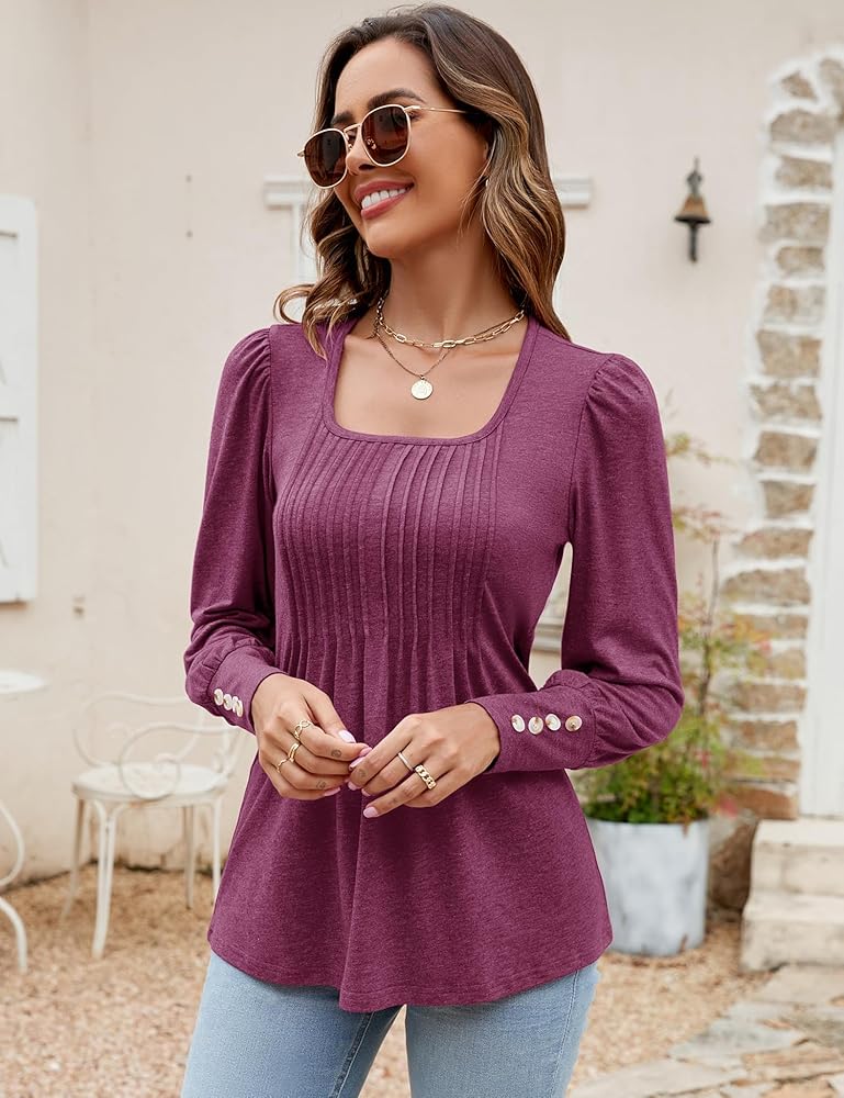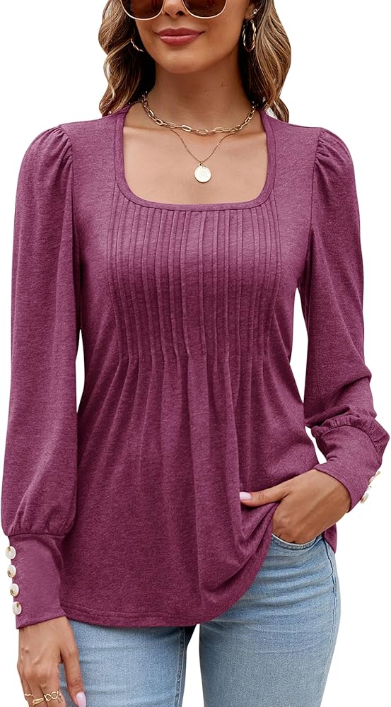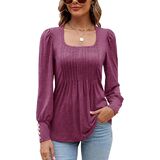 【المميزات】يتميز هذا التونيك النسائي ذو الرقبة المربعة بتصميم فريد من نوعه من الطيات، مما يضيف لمسة من الجاذبية إلى الملابس الرسمية. أكمام منتفخة وأساور بأزرار من الراتنج يمكنها تعديل ذراعيك بشكل جيد، وتجعلك تبدو أكثر رشاقة وسحرًا. ميزات أنيقة وعتيقة اجعل قميص الخريف هذا أكثر جاذبية.