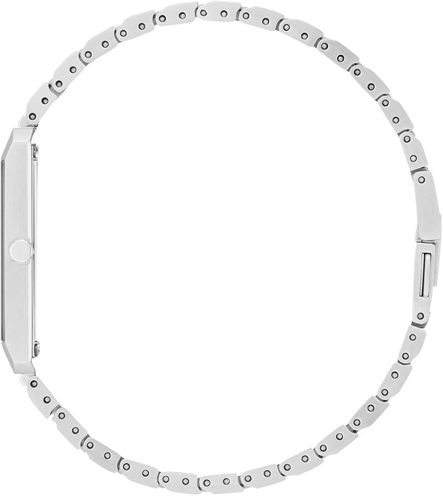 ساعة Stiletto الصغيرة الرقيقة من سيتيزن هي الساعة المثالية للجنسين التي تكمل كل نمط. تم تزيين السوار على شكل سوار من الفولاذ المقاوم للصدأ بعلبة مربعة بلونين من الذهب الوردي ووجه فضي، مع قرص فضي اللون. تعمل الساعة المجهزة بتقنية Eco-Drive بالضوء، ويبلغ سمكها 5.06 ملم (+/- 0.25 ملم) فقط، مما يمنحها مظهرًا نحيفًا بشكل لا يصدق