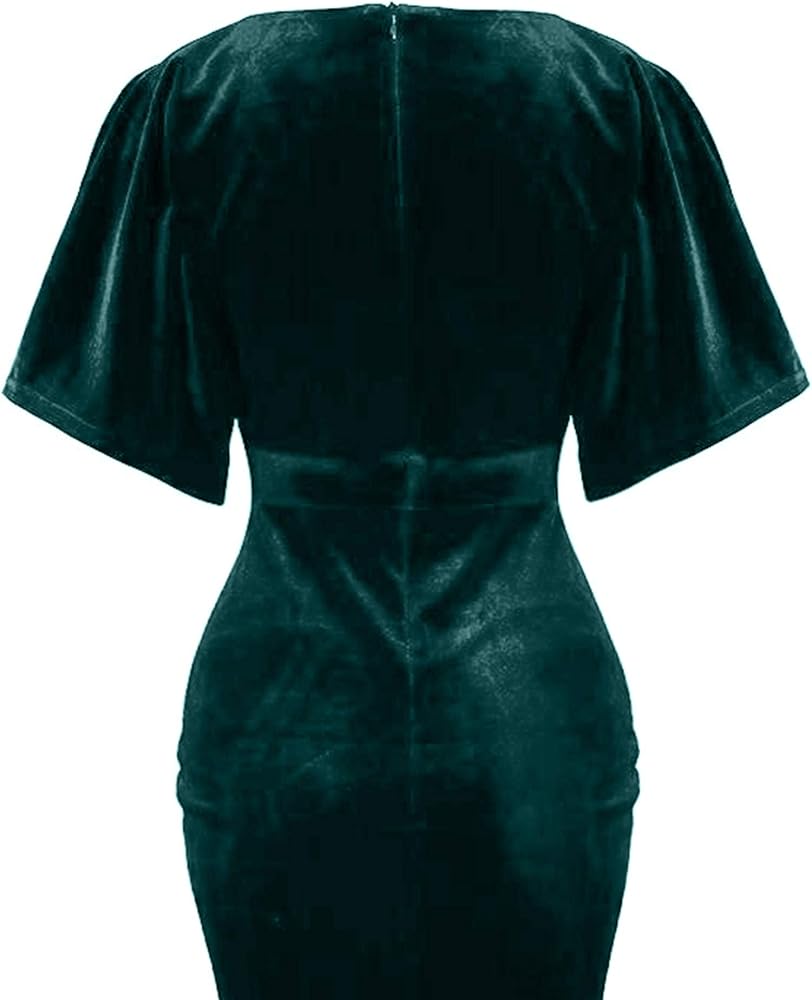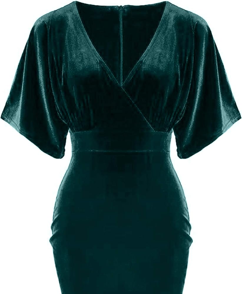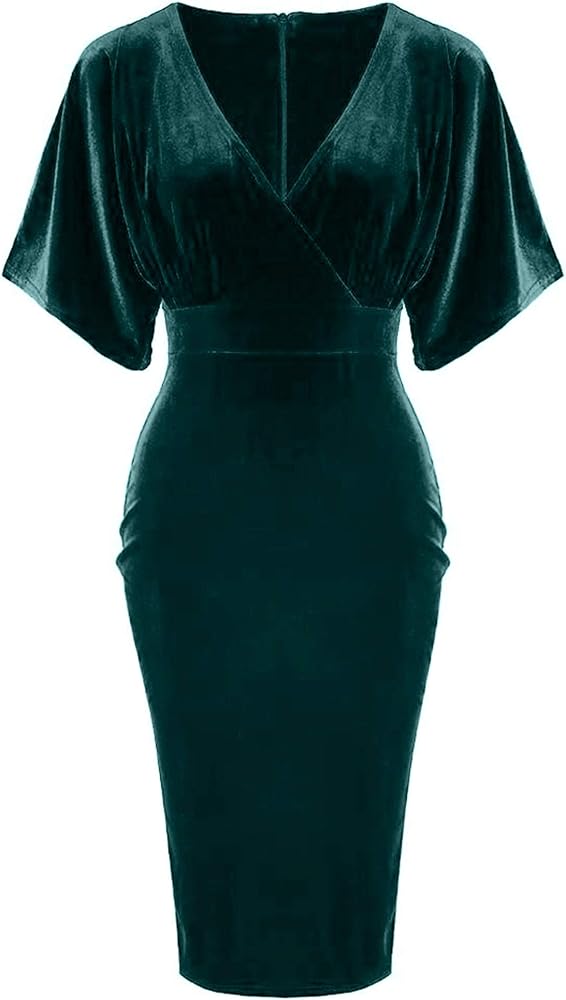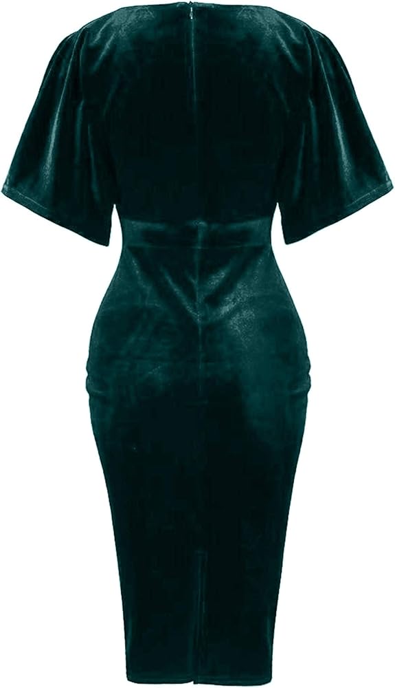 هذا الفستان هو فستان قلم رصاص رائع ذو طراز عتيق، مصنوع من مخمل أحمر رائع. خط عنق على شكل حرف V، جزء علوي ملفوف، أكمام على شكل فراشة، طول الركبة، مزود بسحاب خلفي، إنه فستان رائع!
