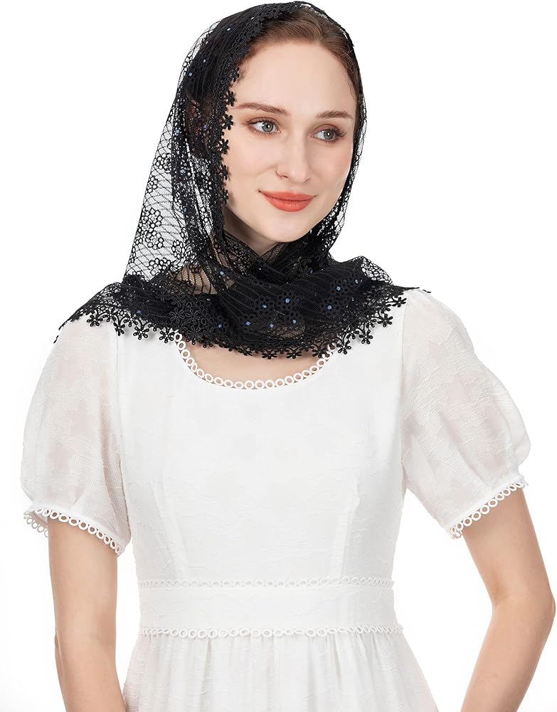 غطاء رأس أنيق لعبادة ربنا. متعدد الاستخدامات للغاية بحيث يمكن ارتداؤه بعدة طرق. يمكن ارتداؤه في الكنيسة، أو الحداد الجدي، أو الوشاح، أو كتعبير عن الموضة.