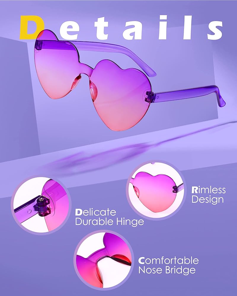 هدايا رقيقة: يمكن وضع النظارات الشمسية على شكل قلب كمفاجأة احتفالية لزملائك أو والديك أو أي شخص مهم بالنسبة لك في أعياد الميلاد أو رأس السنة أو حفلة الديسكو أو غيرها من الاحتفالات، لإظهار اهتمامك وحبك لهم وجعلهم أكثر سعادة