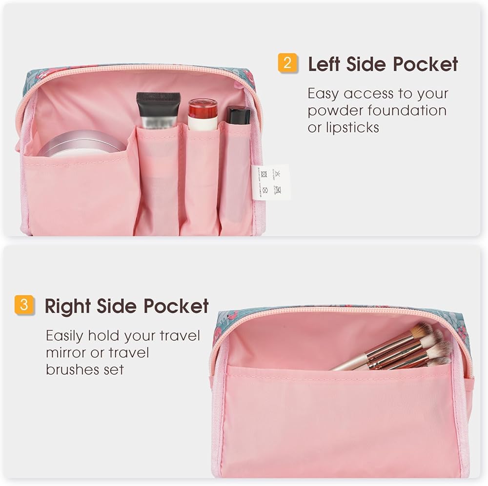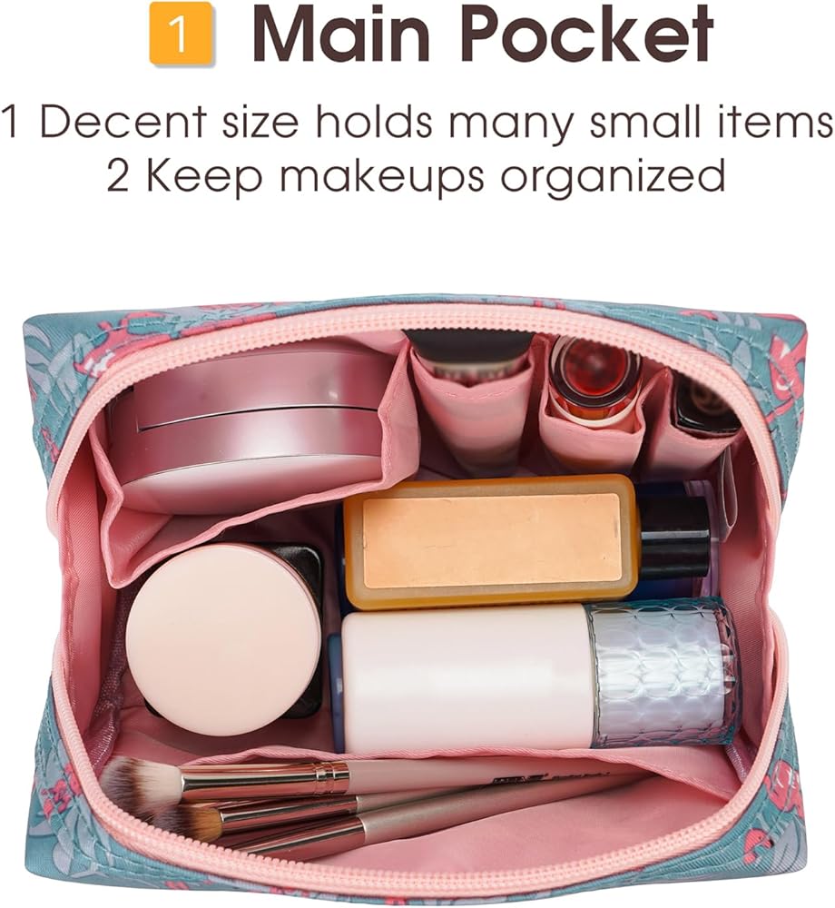 ✅ حجرة رئيسية واسعة - حجرة رئيسية واحدة مع 5 جيوب صغيرة لتنظيم مكياجك بدقة. حجرة واحدة كبيرة تحمل بسهولة مستحضرات التجميل ذات الحجم المناسب للسفر أو منتجات العناية بالبشرة الكبيرة. جيوب جانبية تحمل خافي العيوب أو أحمر الشفاه أو غيرها من الأشياء الصغيرة.