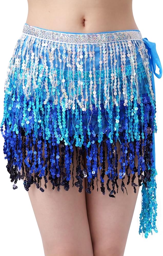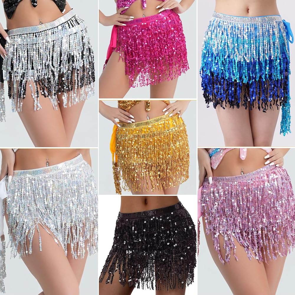 - وشاح الورك هذا خفيف الوزن وناعم. تتميز تنورة الرقص الشرقي بتصميم فريد ورائع، والترتر الجميل يلمع تحت الضوء يجعلك جذابة ولافتة للنظر.