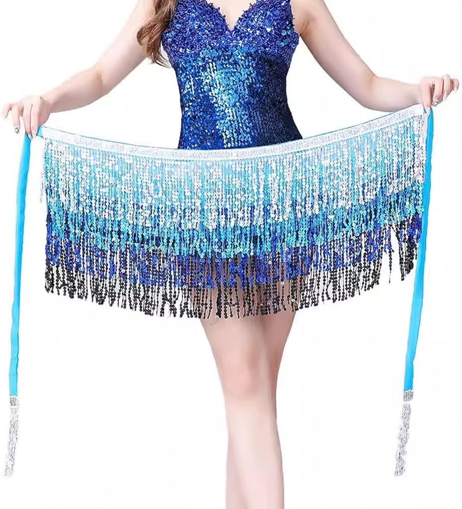 - وشاح الورك تنورة الرقص بالترتر هو مقاس حر ومناسب لكل النساء والفتيات. طول الخصر حوالي 185 سم. متوفر باللون الفضي والأسود والأحمر والأزرق وما إلى ذلك.