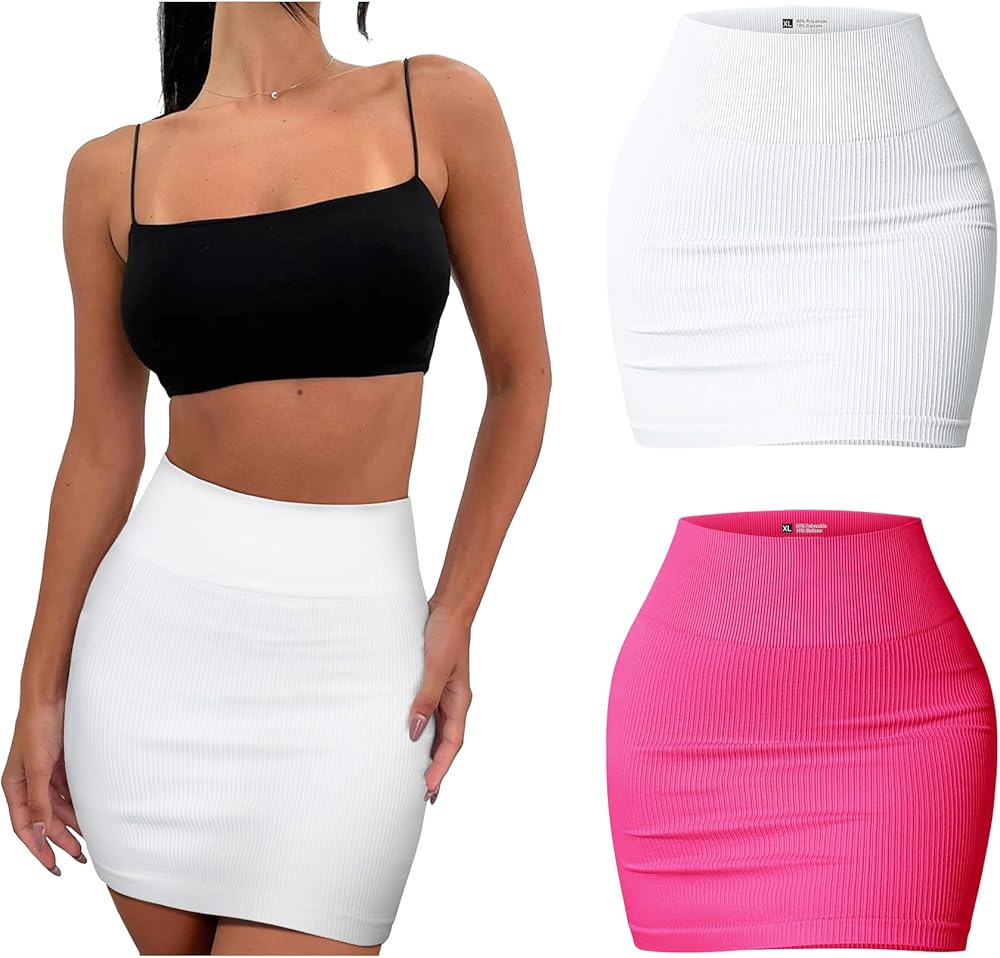 PEIQI طقم تنورة نسائي مكون من قطعتين أساسي قابل للتمدد مضلع كاجوال عالي الخصر Bodycon ملفوف تنانير صغيرة