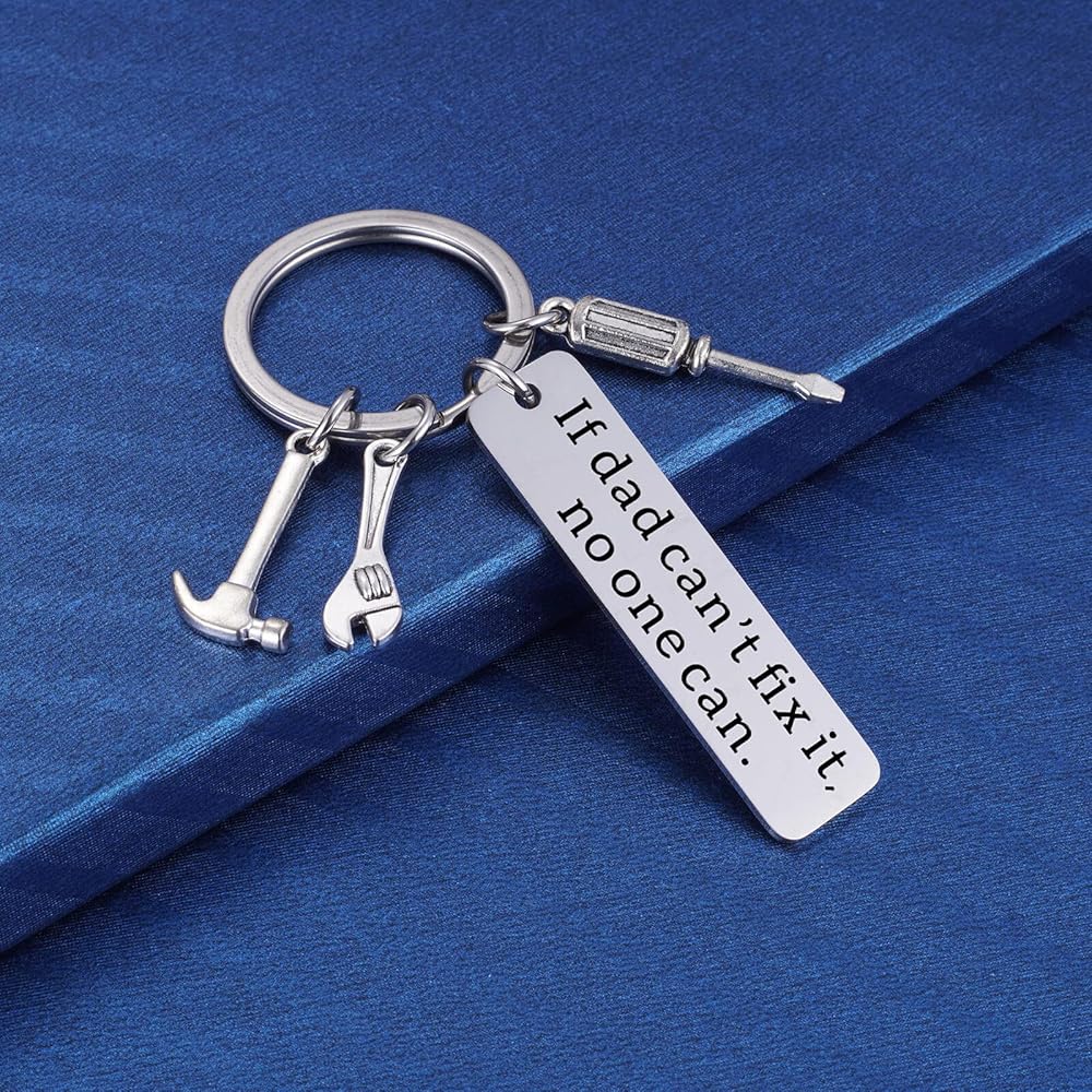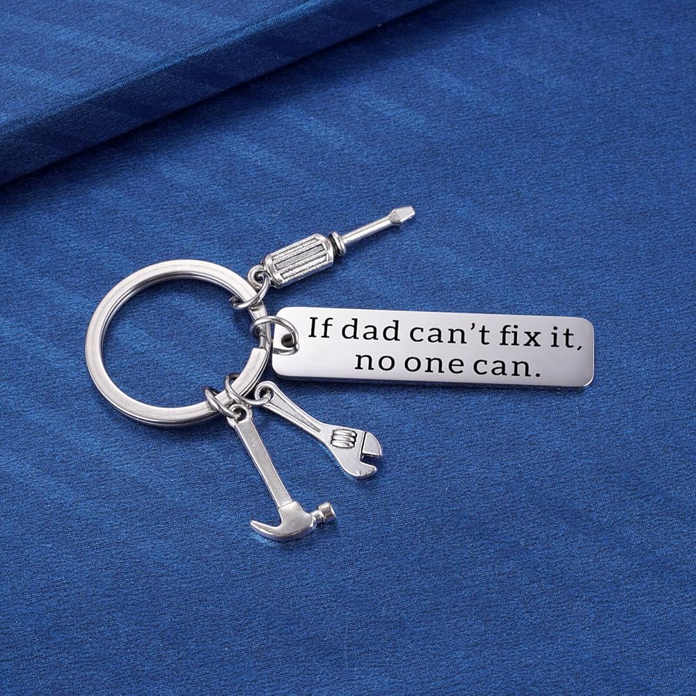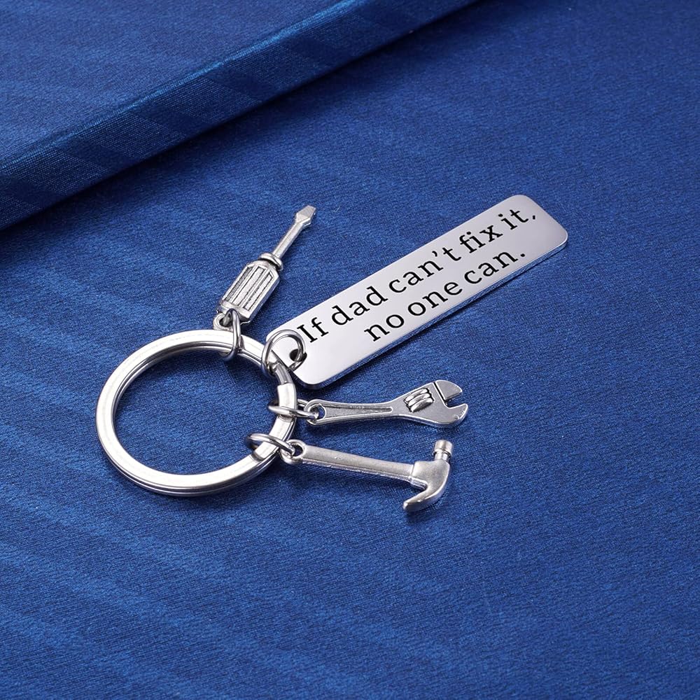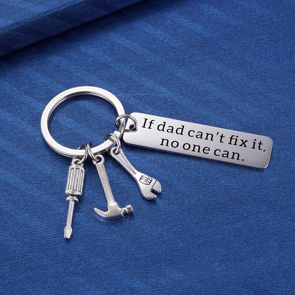 هدايا رائعة لسلسلة المفاتيح للأب مفيد: مفتاح للأب الإبداعي يقرأ "إذا كان الأب لا يستطيع تثبيته، لا أحد استخدامه" مع مفك البراغي، مفتاح الربط، سحر المطرقة. احصل على هذا للرجل النجار، الحرفية، والدك الميكانيكي في حياتك، أو الذين يحبون النجارة DIY وإصلاح الأشياء في جميع أنحاء المنزل. فكرة هدية رائعة لأي أب يعمل بجد .