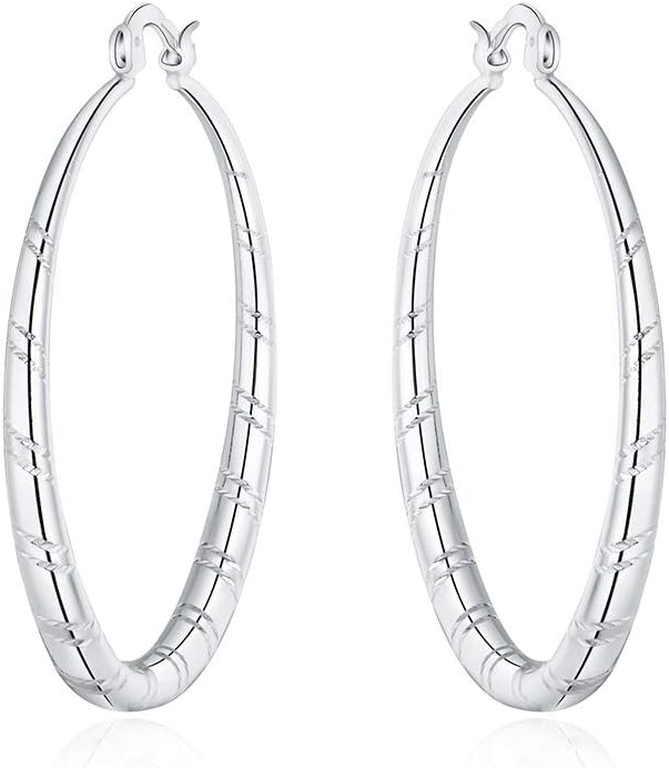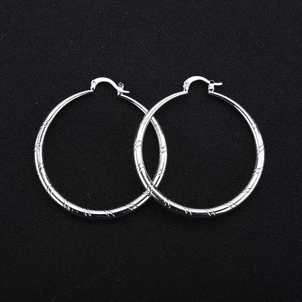 أقراط SOSUO نسائية من الفضة الإسترلينية 925 مرصعة بأذن مستديرة مجوهرات الزفاف (1.5 بوصة)، مقاس واحد