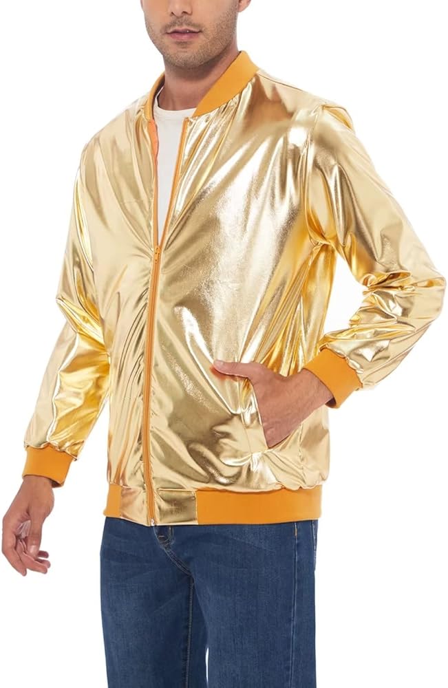 تجمع هذه السترة الذهبية بين سترة البيسبول الكلاسيكية وأسلوب الديسكو في السبعينيات. ارتديه مع قمصان بسيطة وسراويل غير رسمية وجينز وأحذية رياضية لإضفاء مظهر رياضي ومريح.