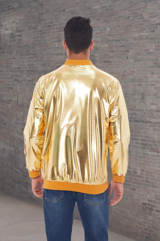 سترة البيسبول الذهبية مناسبة لأي نشاط. مناسبة لحفلات النوادي الليلية، ولعب الأدوار، والعروض المسرحية، والديسكو، والهيب هوب، والكريسماس، وحفلات الهالوين، والعطلات، والملابس الكاجوال اليومية. إن ارتداء هذه السترة الانتحارية في الحفلة أمر مدهش للغاية.