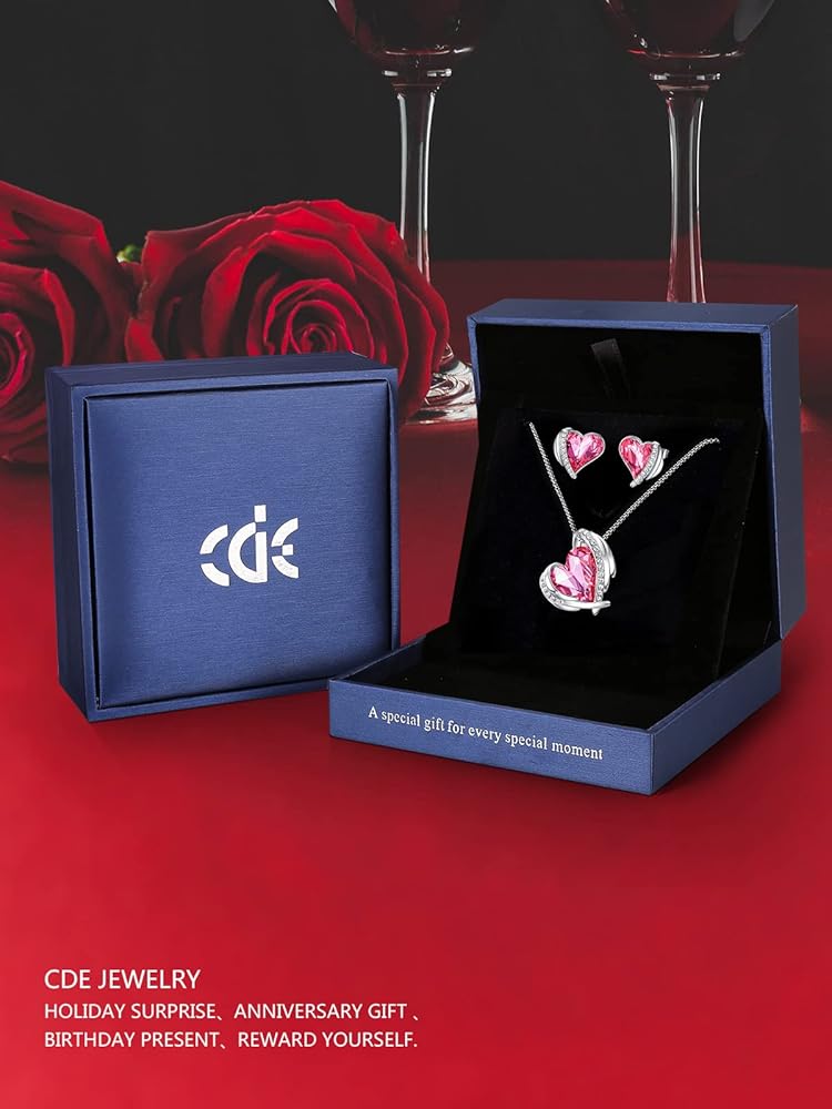 CDE الحب القلب القلائد والأقراط مجموعة مجوهرات للنساء روز الذهب بلورات جوهرة عيد الميلاد عيد الأم عيد الحب هدايا مجوهرات للنساء زوجة حزب / الذكرى السنوية / عيد ميلاد