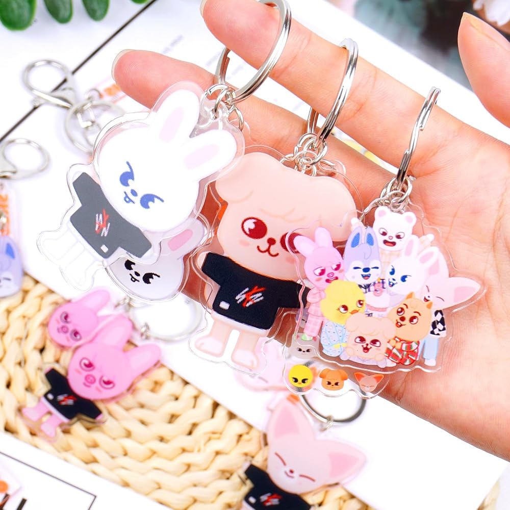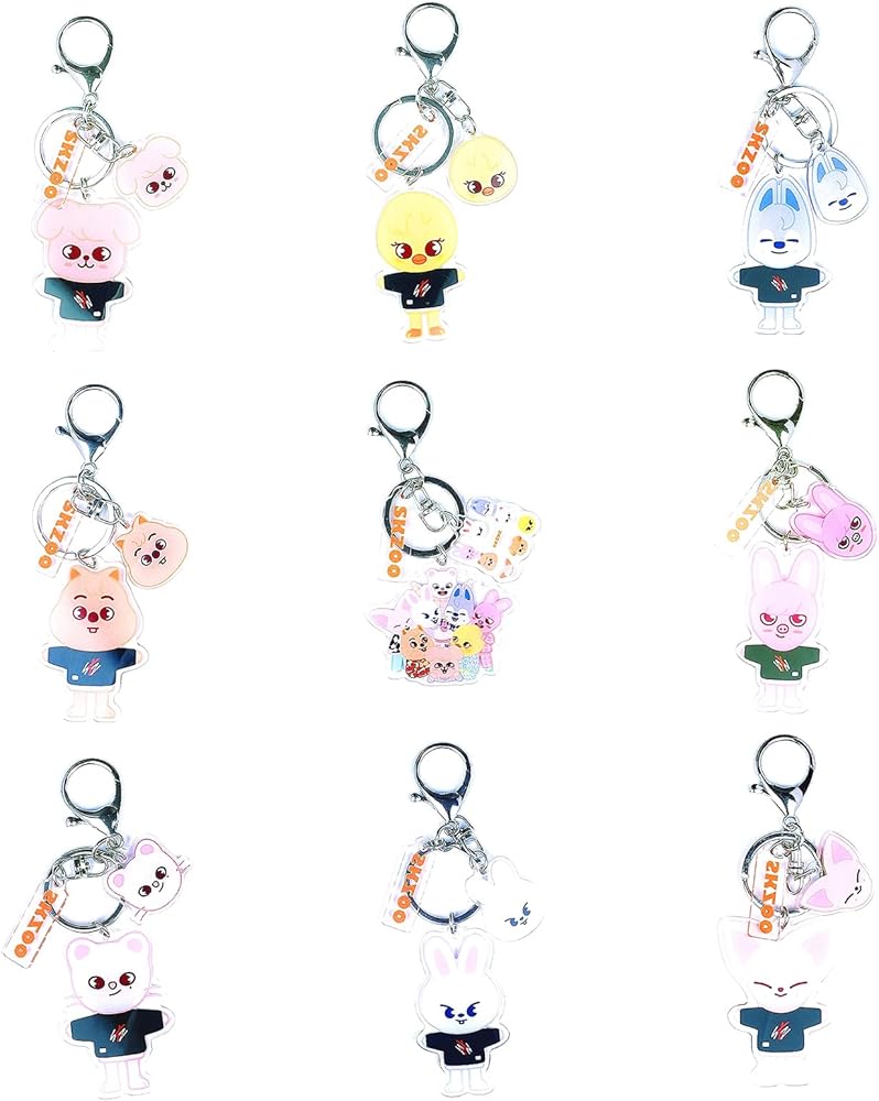 9 قطع سلسلة مفاتيح SKZOO، مجموعة سلسلة مفاتيح Stray Kids مجموعة هدايا للأطفال الضالة للفتيات والنساء هدايا حفلات أعياد الميلاد Kpop