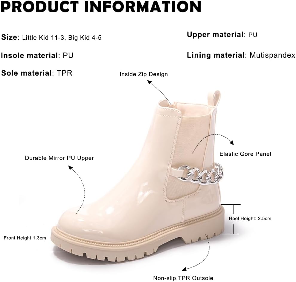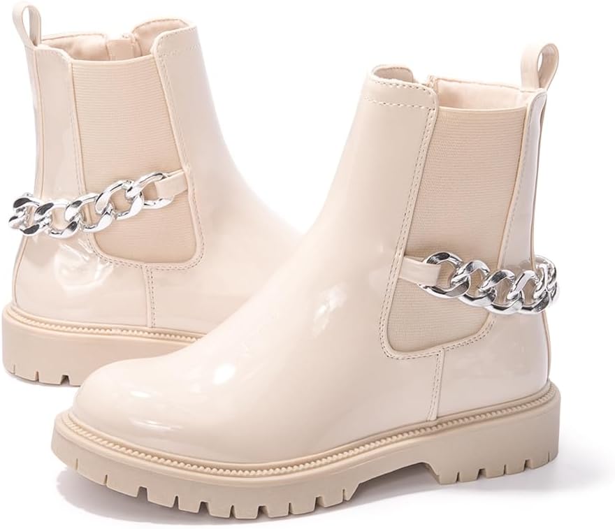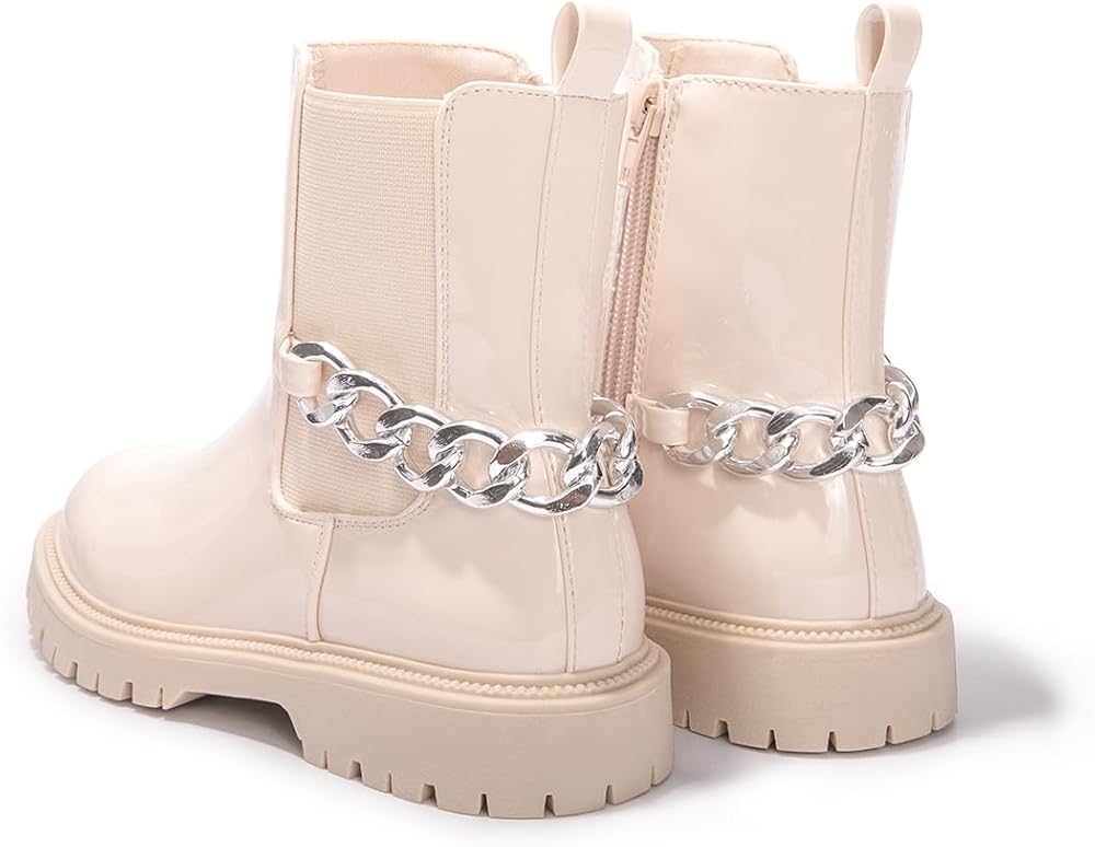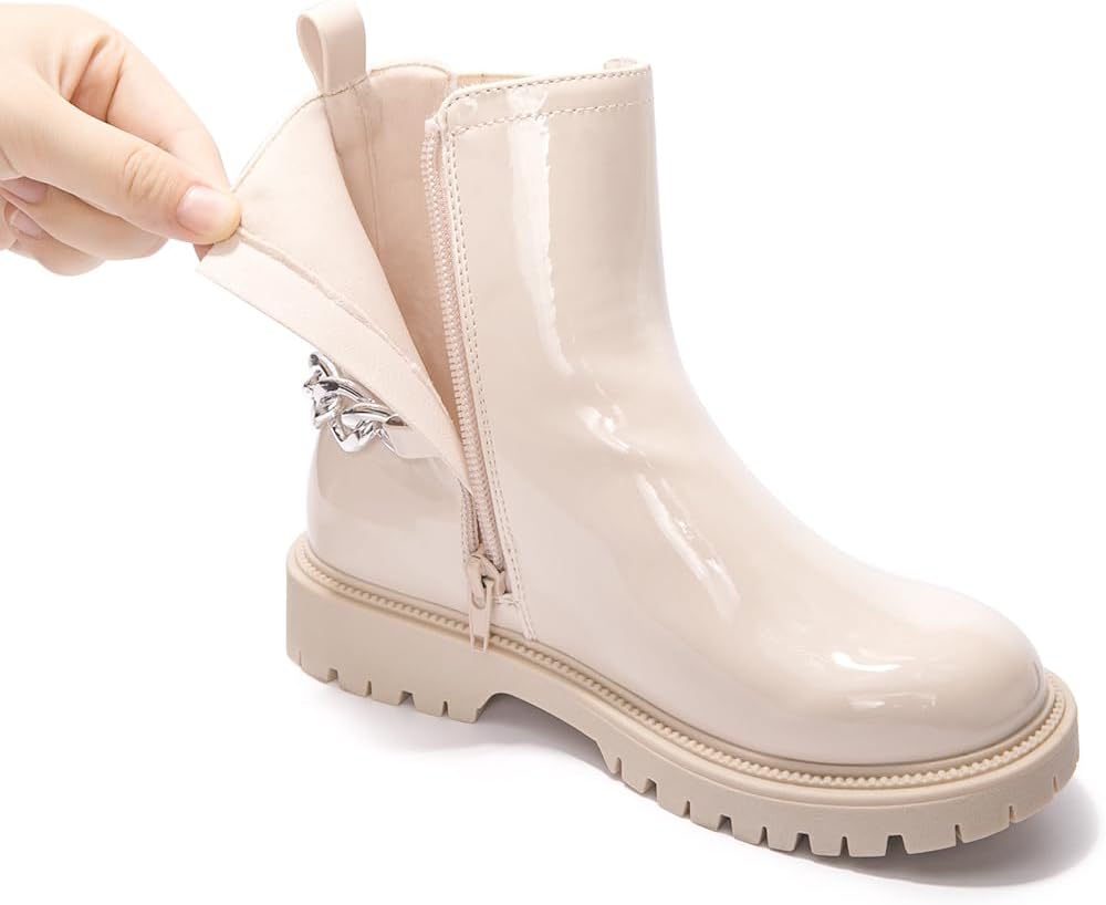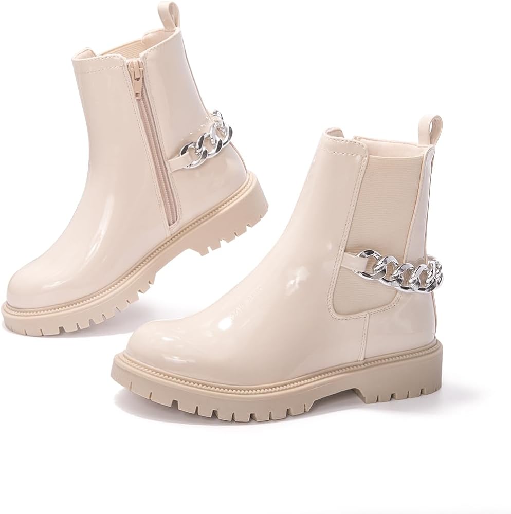 نعل مانع للانزلاق: أحذية تشيلسي اللامعة للفتيات مصنوعة من المطاط اللدن حراريًا المقاوم للاهتراء ونعل غير قابل للانزلاق، ونمط مقعر ومحدب عميق يوفر احتكاكًا وقبضة ممتازين، مما يضمن الثبات والسلامة في كل خطوة.
