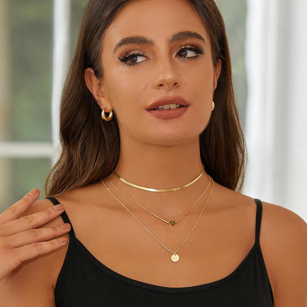 ✦مجموعة قلادات ذهبية✦ ستحصل على 5 أنماط مختلفة من قلادات الحروف وسلاسل الثعبان والمزيد. هناك خيارات متعددة، يمكنك إقرانها معًا لخلق شعور بالطبقات، أو إقرانها بشكل منفصل لإنشاء أنماط عصرية متنوعة. إن تنوع مجموعة القلادات لدينا يجعلها إضافة مثالية لأي مجموعة مجوهرات.