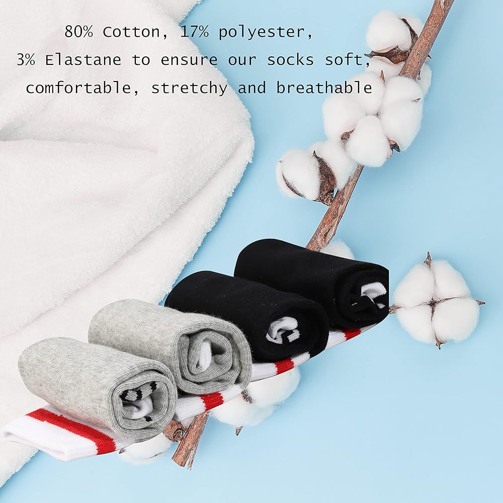 • *الخامة: الجوارب مصنوعة من 80% قطن، 17% بوليستر، 3% إيلاستين. وهذا يعني أنه سيدوم مئات الغسلات ولن يتقشر أو يبهت أبدًا، لذا لن تتشوه الكلمات عند ارتدائها.