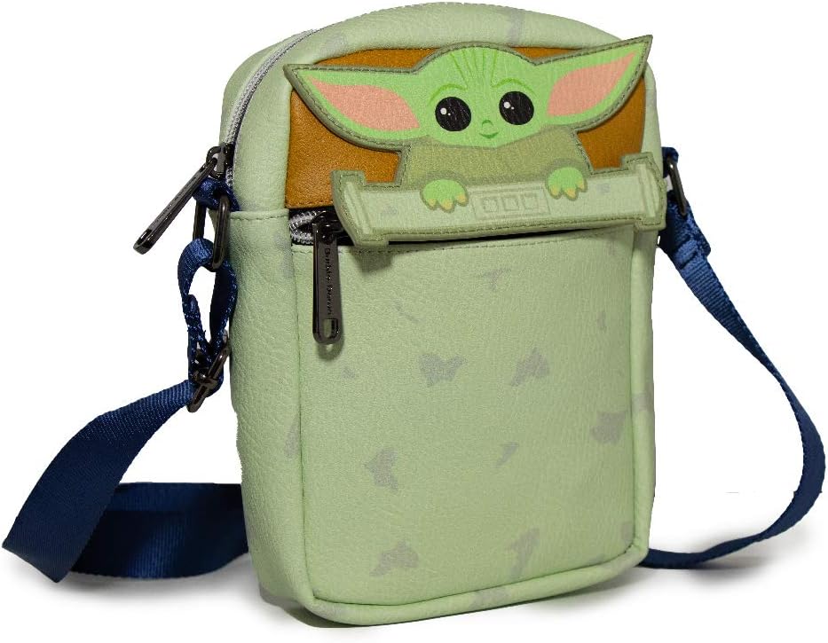 السيدات ستحبين حقيبة ستار وورز ماندالوريان هذه التي تضم الطفل (بيبي يودا)! حقيبة كروس أنيقة وأنيقة مصنوعة من جلد نباتي فاخر. يبلغ مقاسه 20.3 سم × 15.2 سم × 5.0 سم، ويتميز بمساحة لحمل جميع الأشياء المفضلة لديك بما في ذلك الهاتف والمحفظة والمفاتيح وما إلى ذلك. يتم تطبيق العمل الفني الرائع باستخدام أحدث تكنولوجيا الطباعة حتى يصمد جيدًا مع مرور الوقت. هذا المنتج مصنوع بواسطة باكل-داون ومرخص رسميًا من لوكاس فيلم ليمتد.