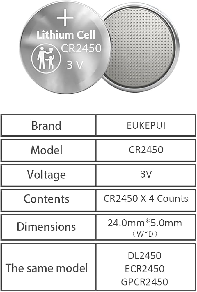 EUKEPUI CR2450 /DL2450 3V بطارية ليثيوم على شكل عملة معدنية - عدد 4