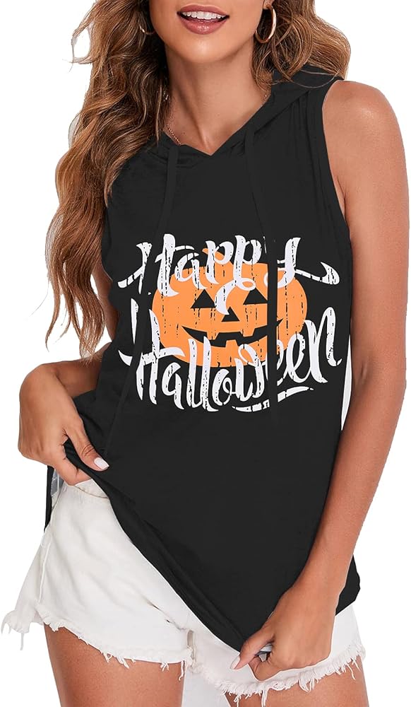 سترة بغطاء رأس خفيفة الوزن للهالوين: هذه القمصان بدون أكمام للتمرين للسيدات هي قمصان مثالية للتمرين بغطاء للرأس جيدة التهوية لأنشطة الهالوين الخاصة بك، قم بتعديل مقاسك لمزيد من راحة الرقبة