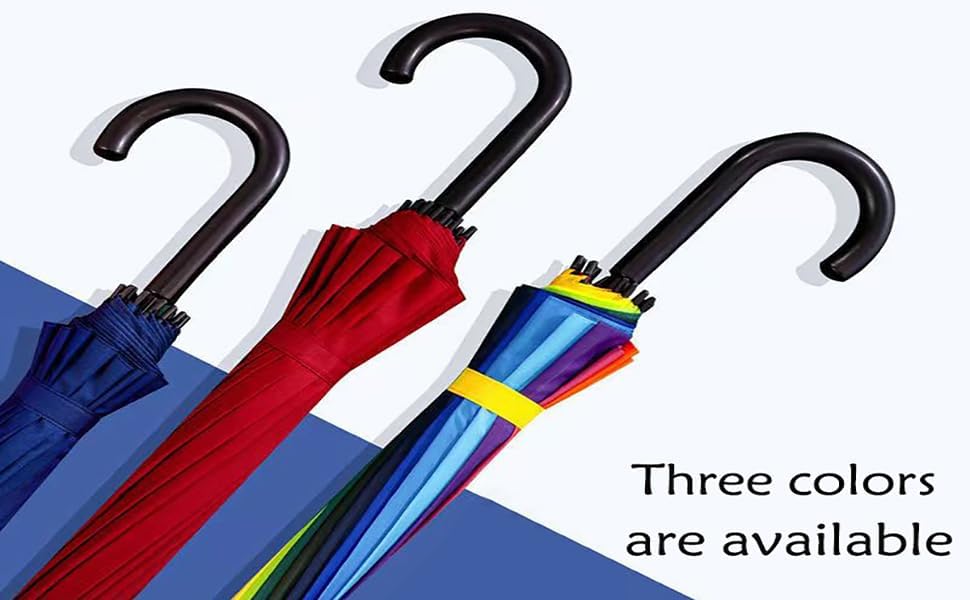 ☂️【تصميم ملون】تزن المظلة العصا 650 جرامًا. هذه المظلة متوفرة باللون الأحمر والبحري وألوان قوس قزح ولها خاصية الفتح التلقائي لسهولة الاستخدام. اختيار الزنبرك عالي الجودة يجعل المظلة تفتح وتغلق بسلاسة دون تأخير.