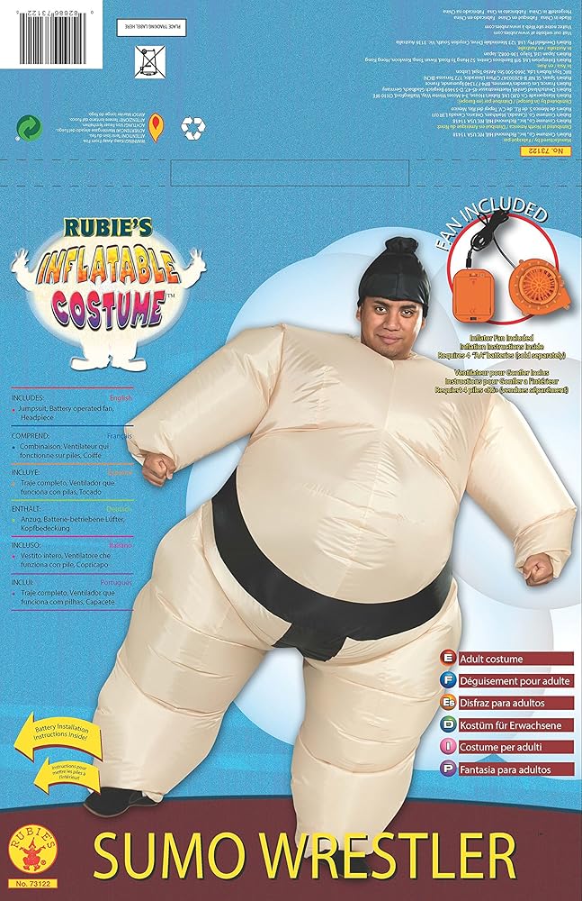 - زي السومو القابل للنفخ مصنوع من النايلون؛ يتضمن غطاء الرأس