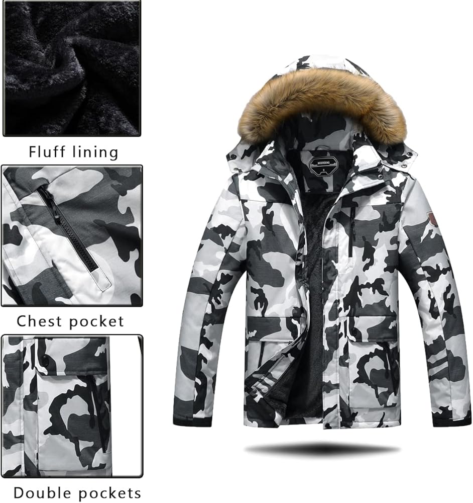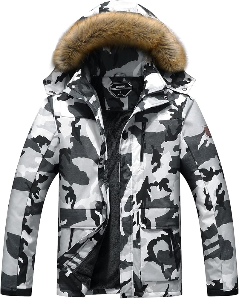 معطف ثلج شتوي رجالي من MOERDENG سترة تزلج دافئة مقاومة للماء وغطاء للرأس ملابس خارجية للعمل
