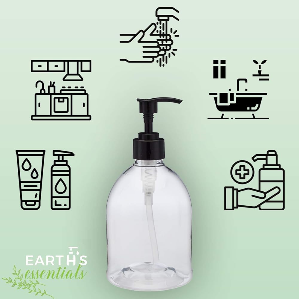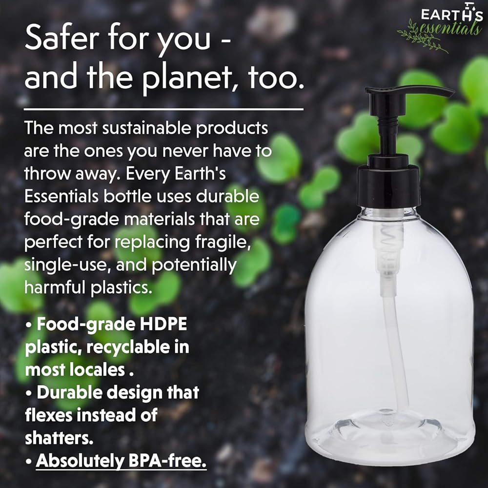 (عبوتان)، زجاجات ديزاينر ذات مضخة قابلة لإعادة الملء من إيرثز إيسينشالز متعددة الاستخدامات 473 مل موزع صابون يدوي ممتاز رائعة لتوزيع منتجات اللوشن المنزلية وزيوت التدليك.