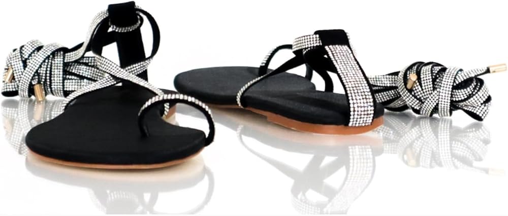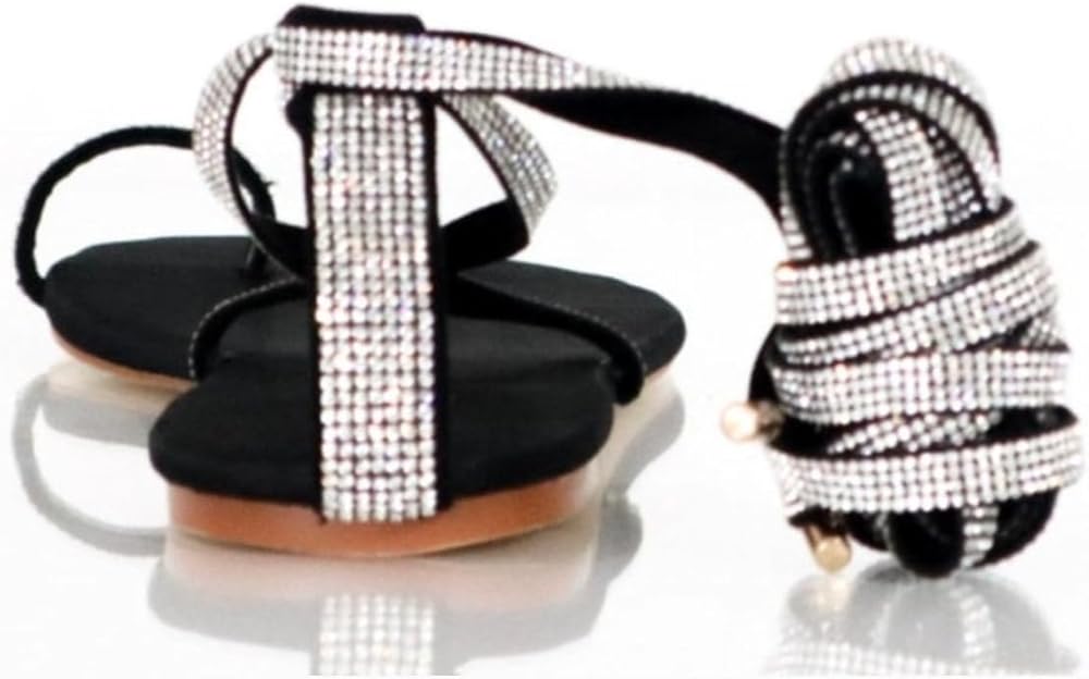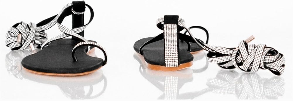أحذية مميزة – صندل غلادياتور بأحجار الراين باللون الأسود – فابو – مقاس 12