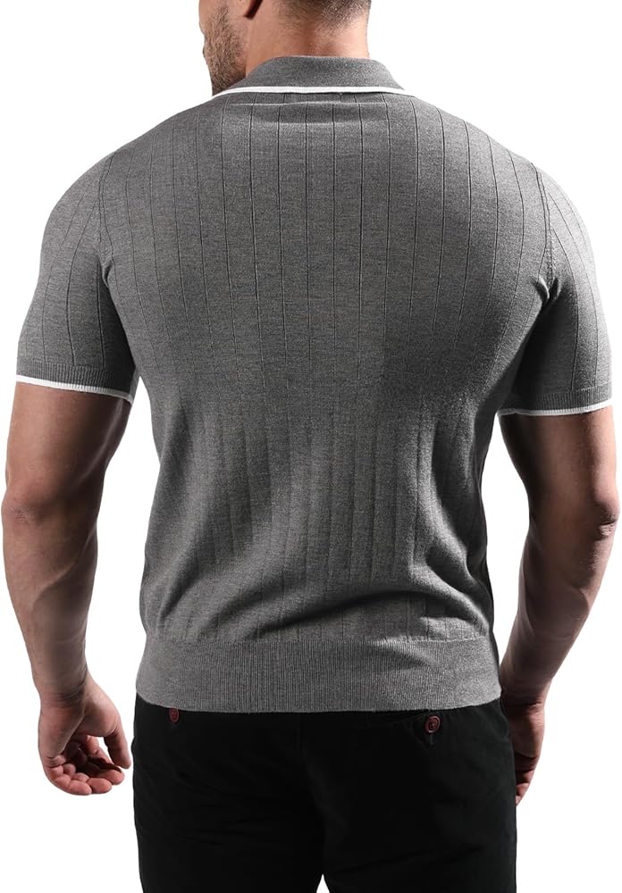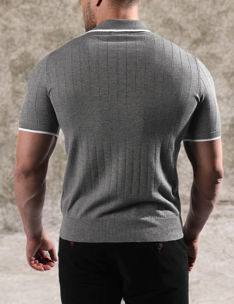 - التصميم: يتميز قميص بولو هذا بأساور وجزء سفلي مضلع، ونمط ملتوي محبوك مع فتحة أزرار، كلاسيكي وملائم.