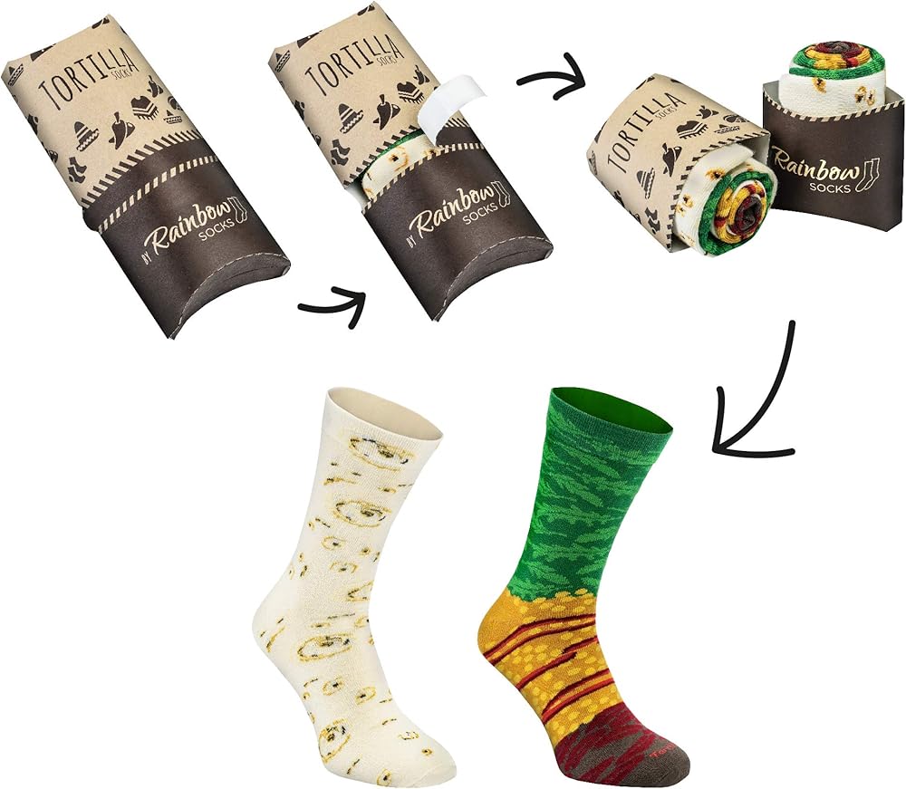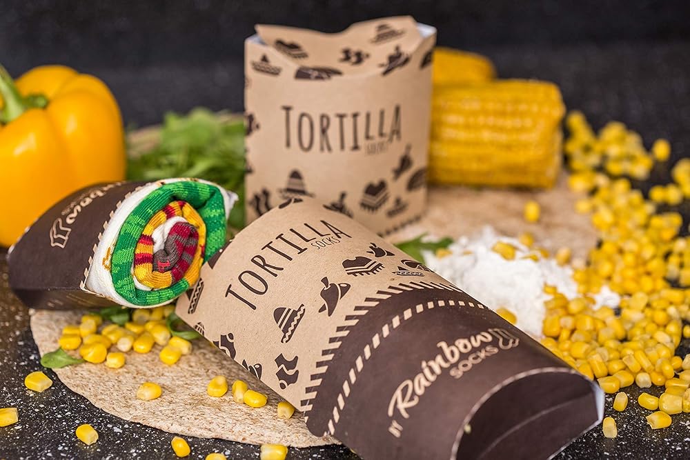 • جوارب استثنائية - شعبية جواربنا ذات الأنماط الفاخرة بعيدة كل البعد عن التناقص، وإجابتنا على ذلك هي جوارب التورتيلا. إنه خيار لجميع الأفراد الذين يتمتعون بروح الدعابة. الجزء الأكثر إثارة للاهتمام هو طريقة تعبئة الجوارب، وهي فرصة رائعة لخداع شخص ما؛)