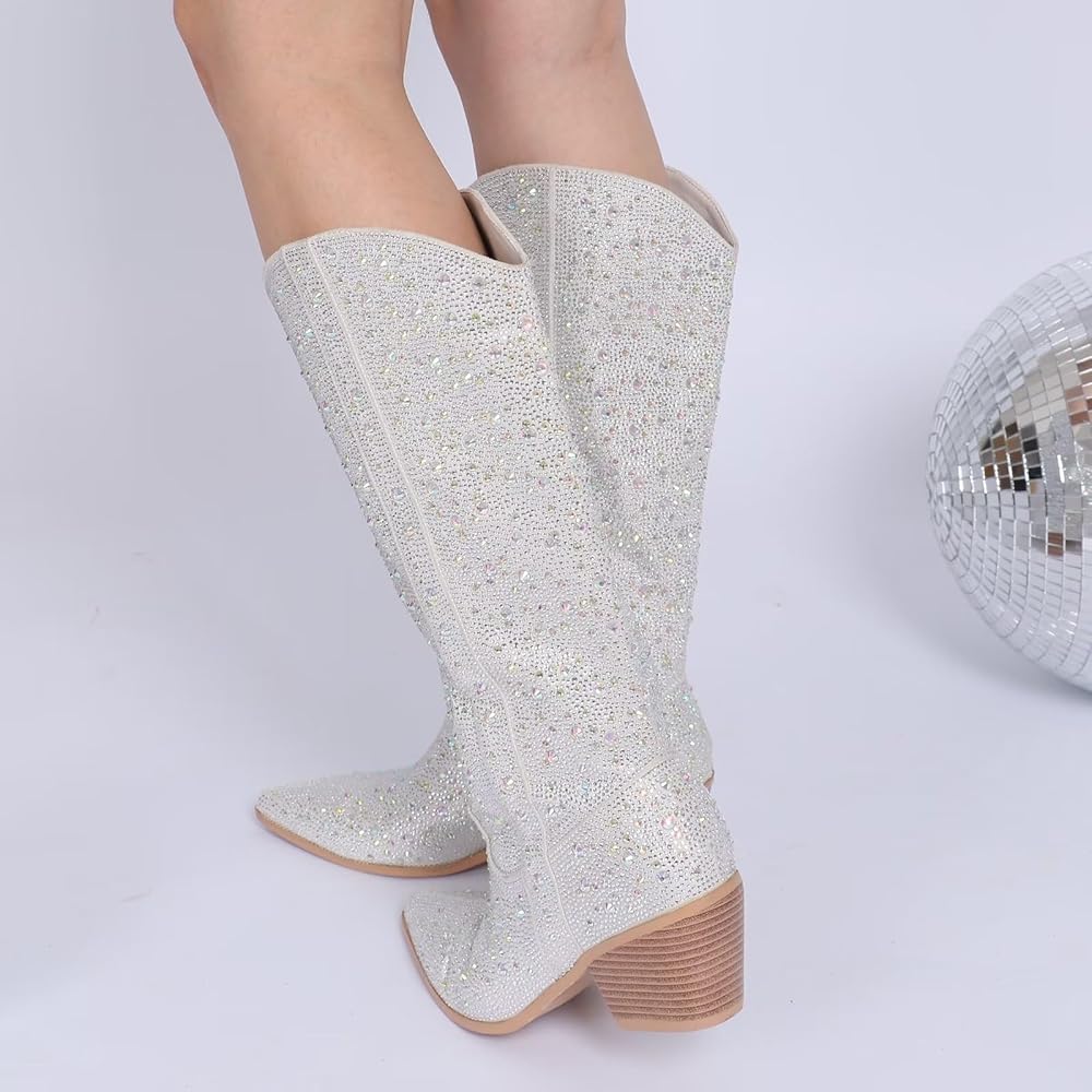 تألقي في دائرة الضوء واجعلي أحذية راعية البقر اللامعة هذه هي القطعة المركزية في ملابسك المستوحاة من الغرب. كن مميزًا بين الجميع وتألق براقة مع الأحذية المصنوعة من حجر الراين