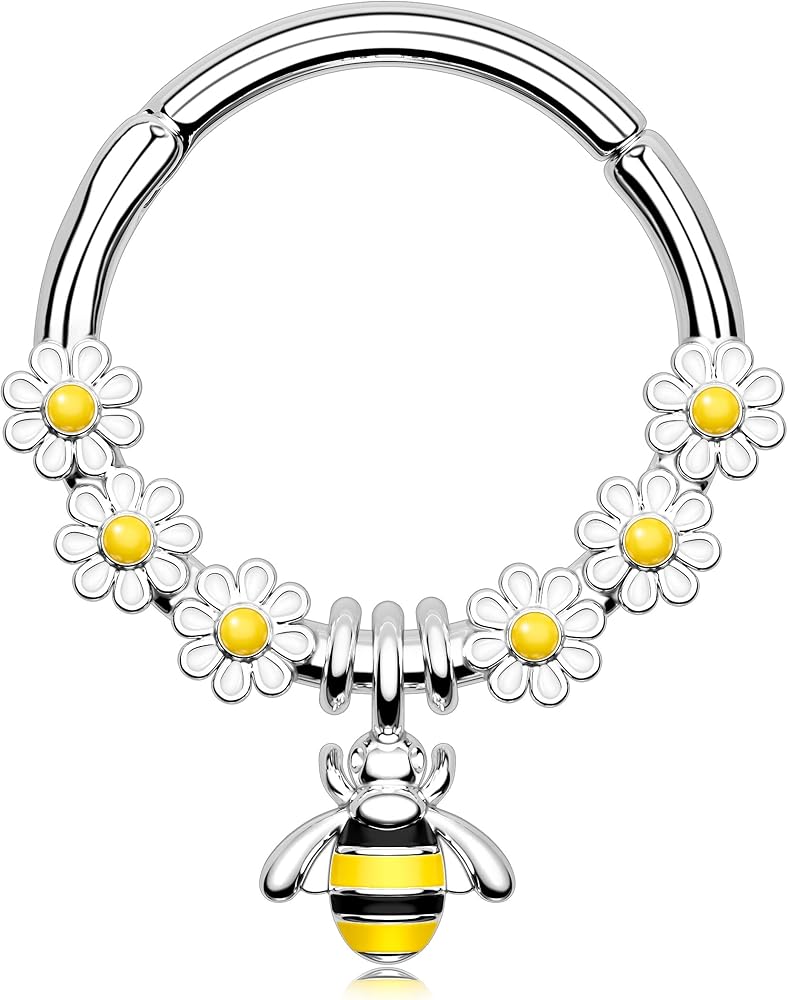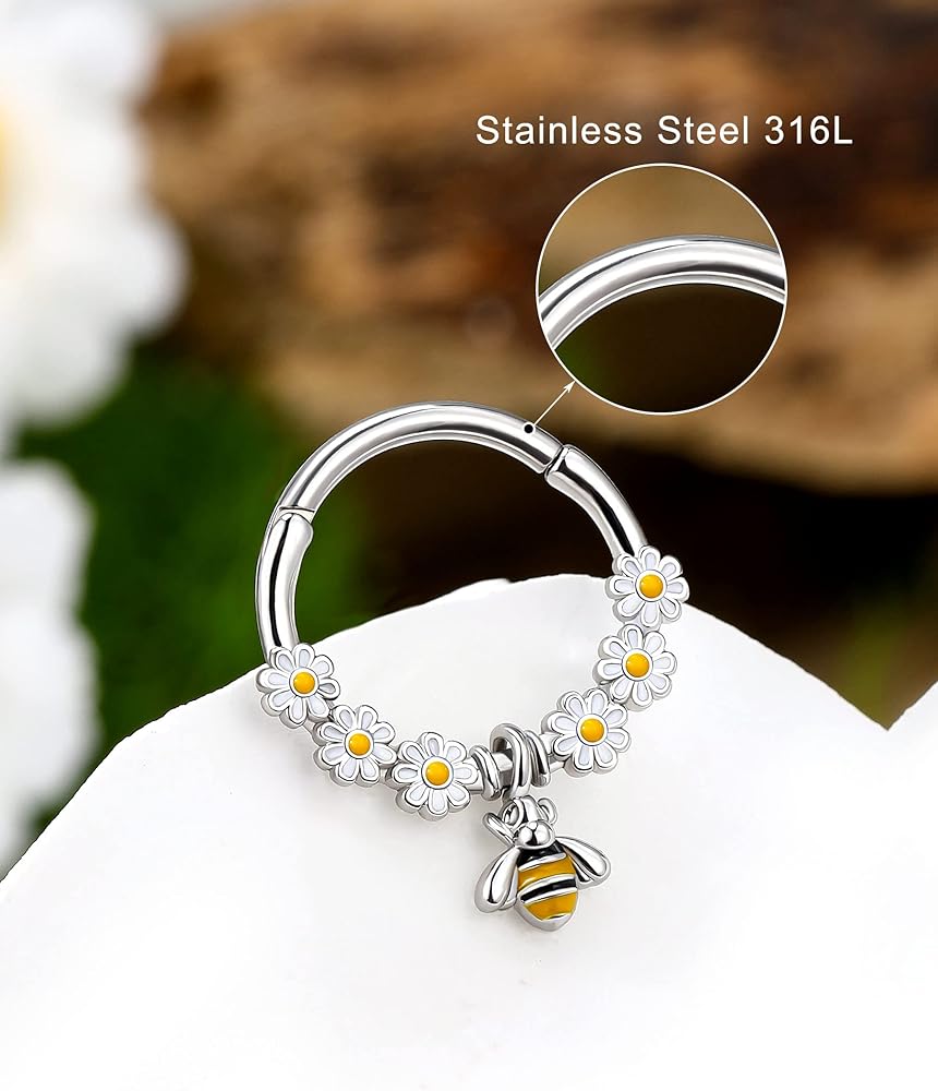 نمط حلقات حاجز النحل: قطعة واحدة 16 جرام من حلقة الحاجز 316L من الفولاذ الجراحي مع أقراط حلزونية مجوهرات متدلية على شكل النحل للنساء والرجال. لون مختلف لتختار من بينها، مناسب للعديد من المناسبات!