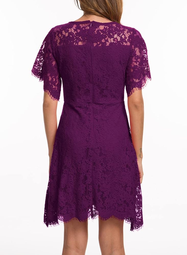 MSLG النسائية الأنيقة جولة الرقبة الأكمام قصيرة الزفاف ضيف الأزهار الدانتيل كوكتيل الحفلات فستان 943